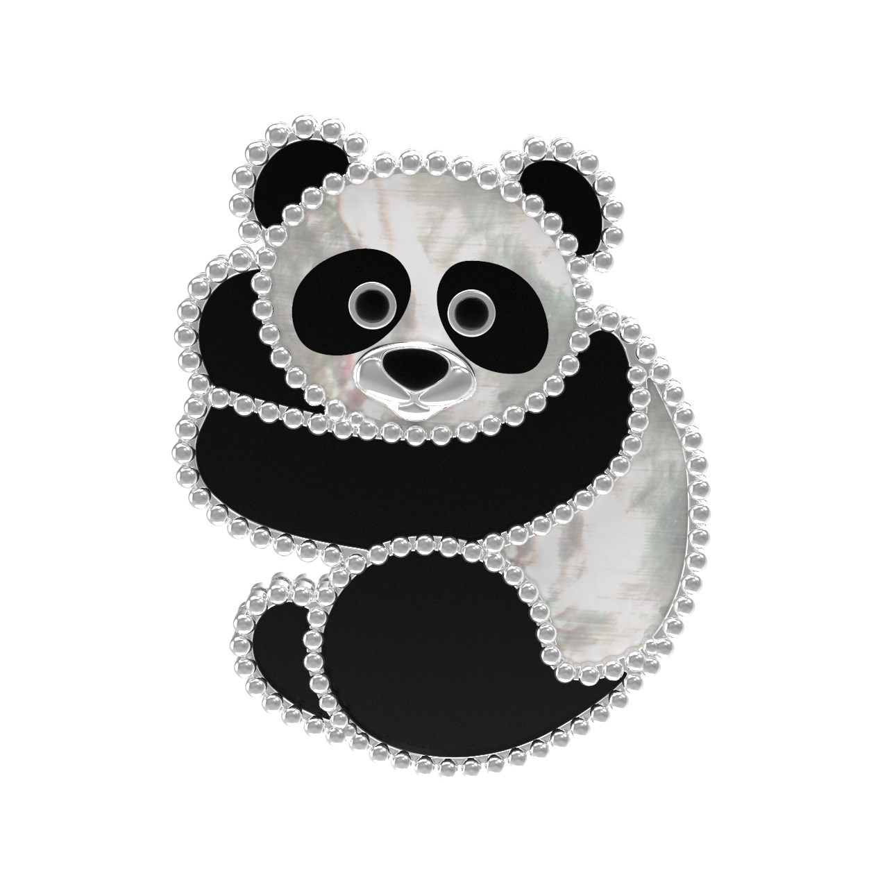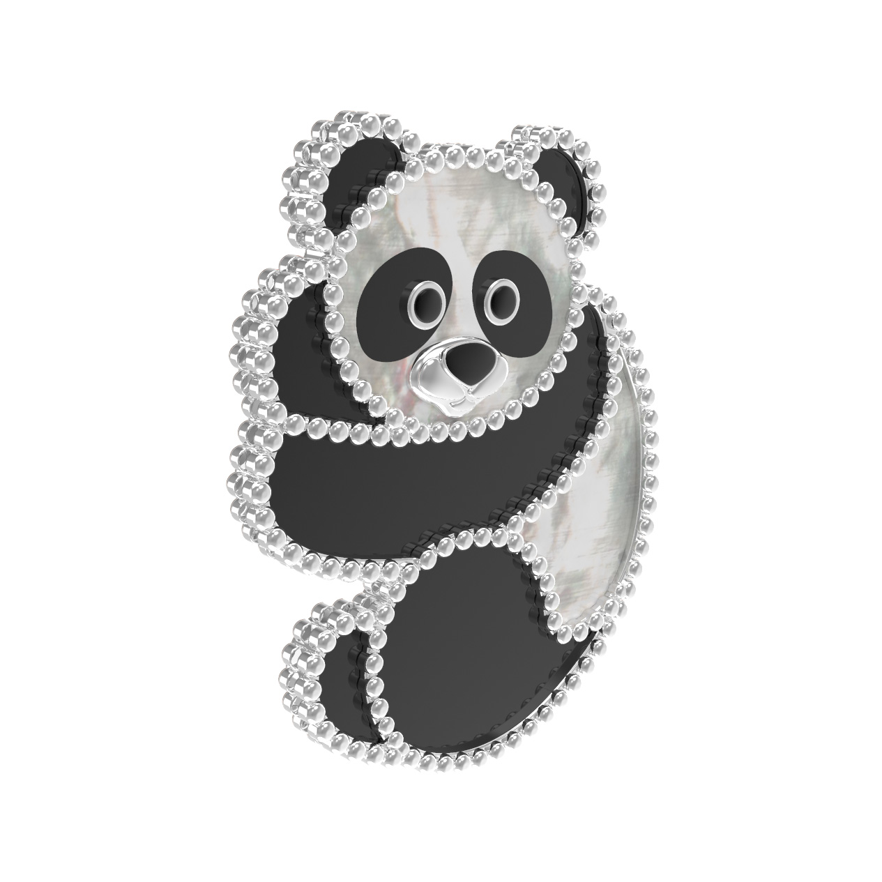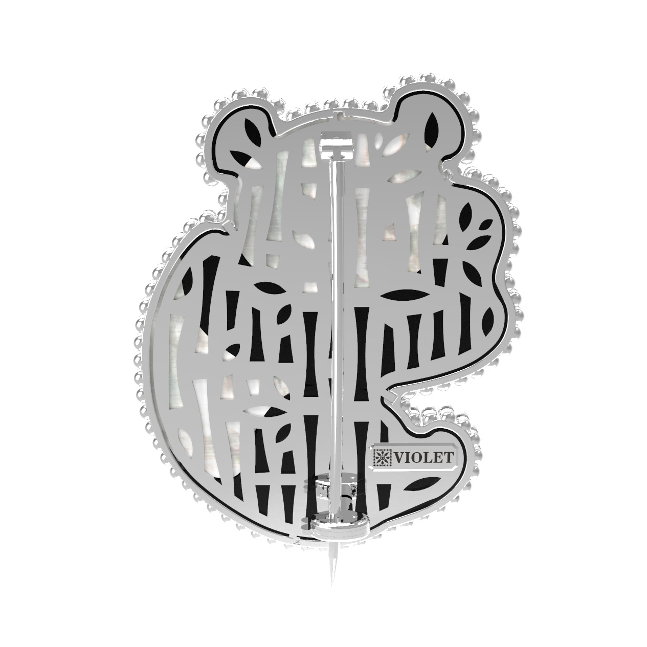 Брошь из белого золота c эмалью, ониксом и перламутром