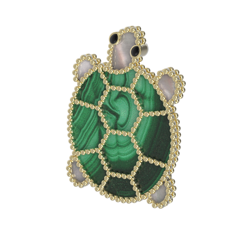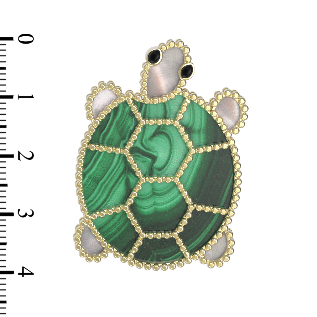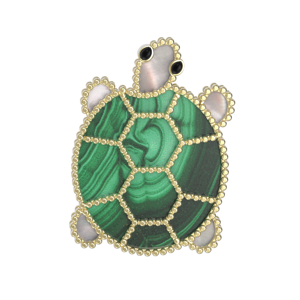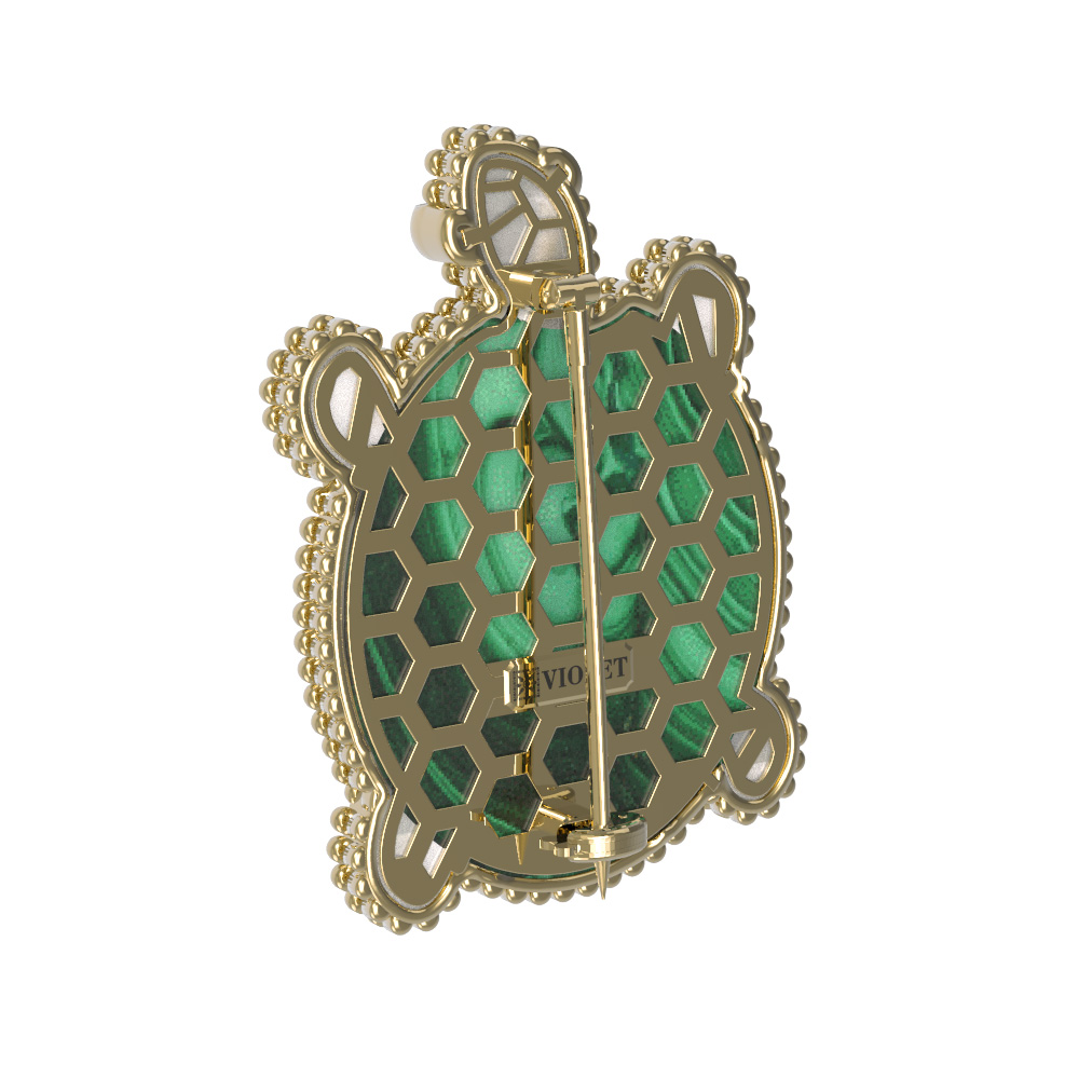 Брошь из лимонного золота c эмалью, малахитом и перламутром