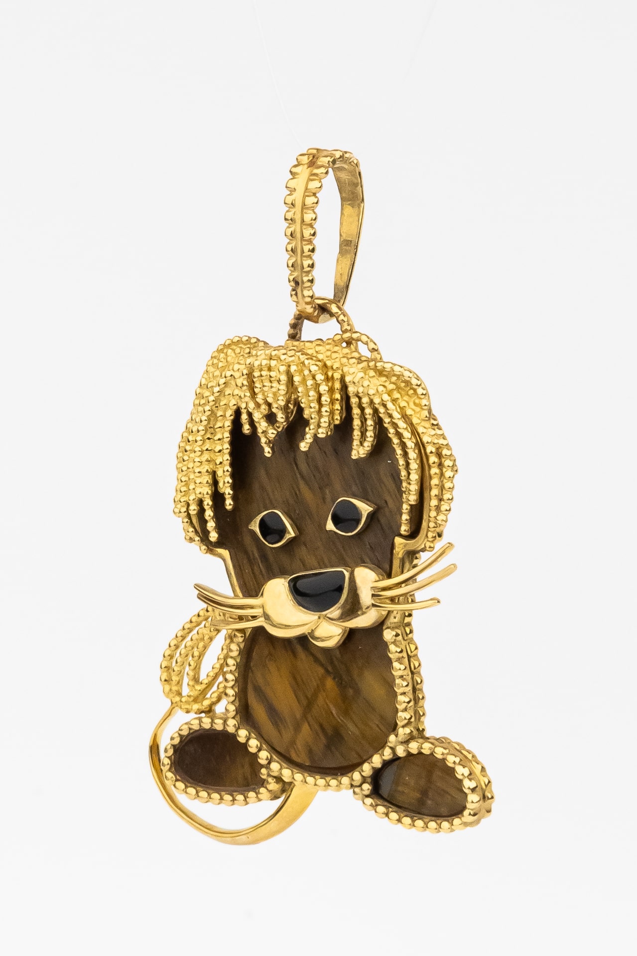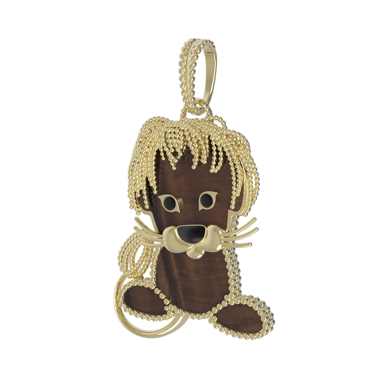 Подвеска из лимонного золота c эмалью и тигровым глазом