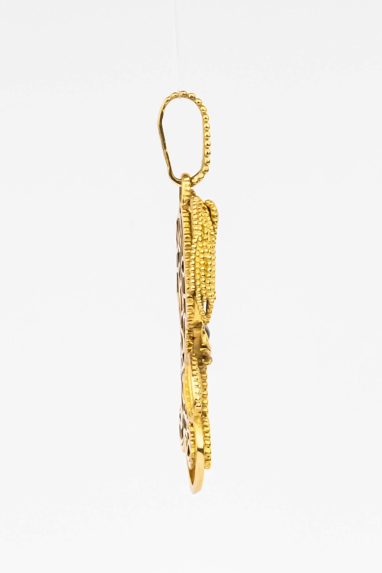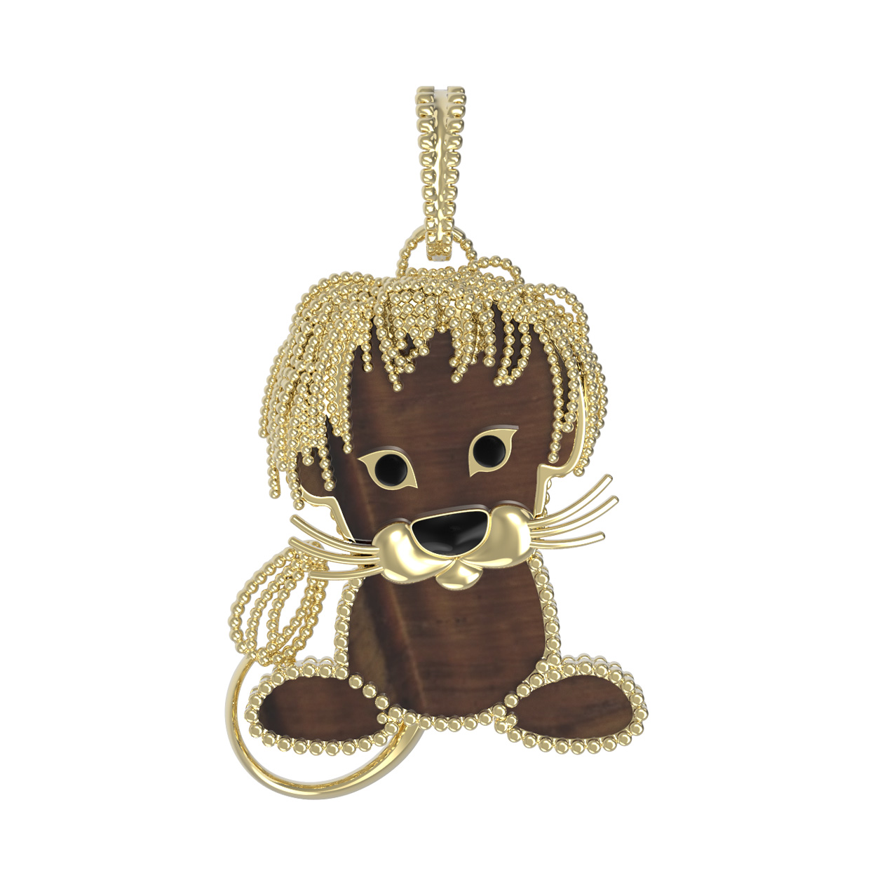 Подвеска из лимонного золота c эмалью и тигровым глазом