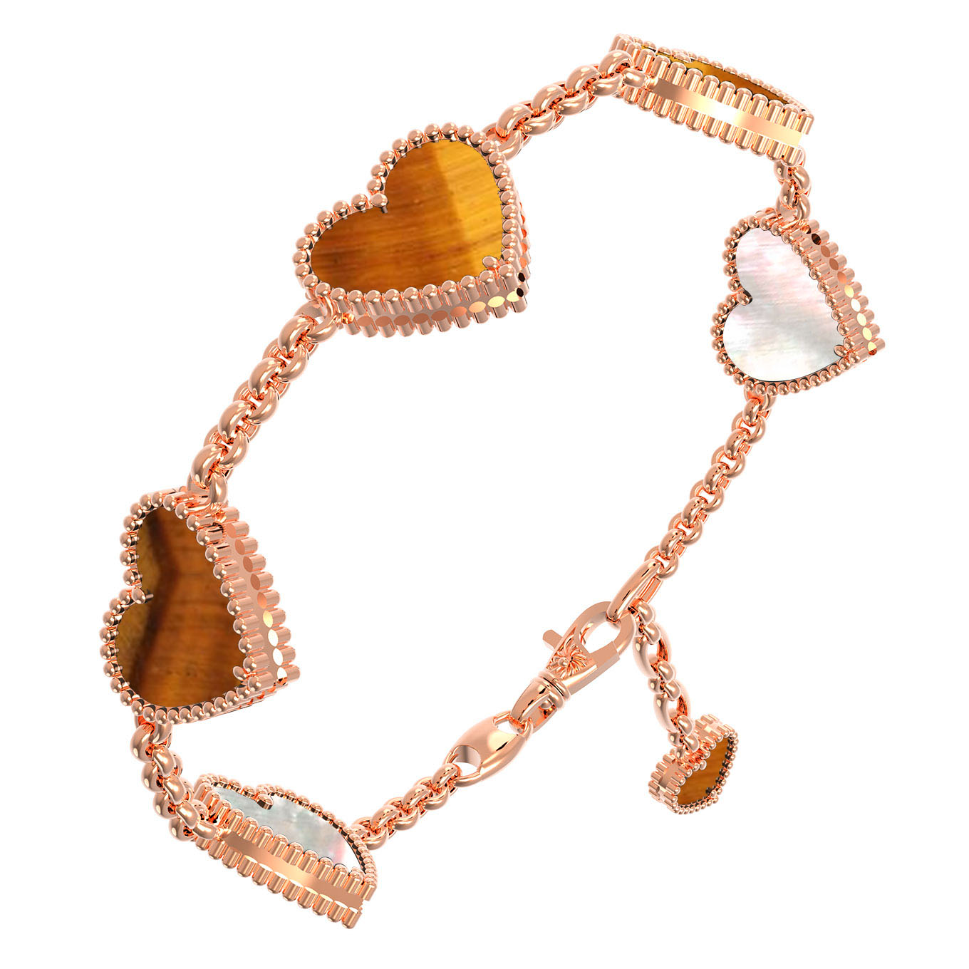 Браслет из золота c тигровым глазом и перламутром