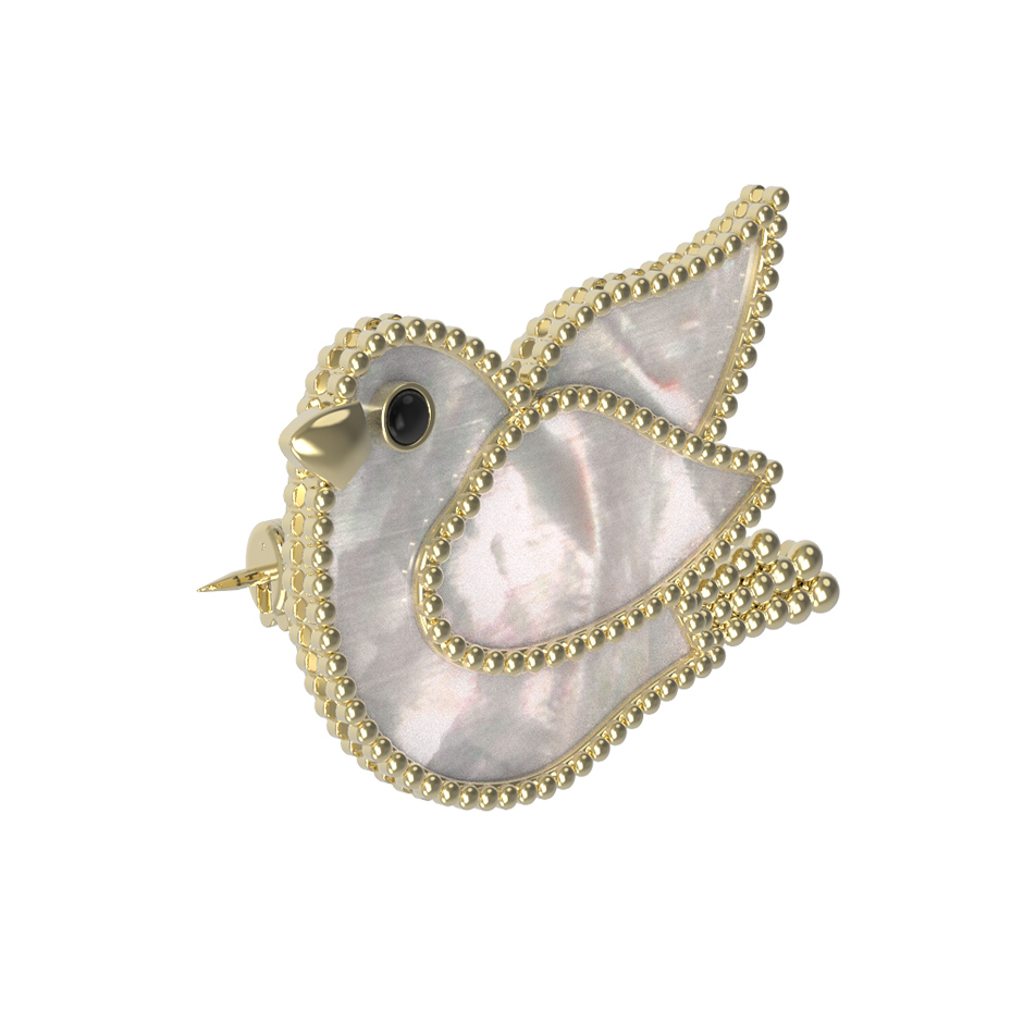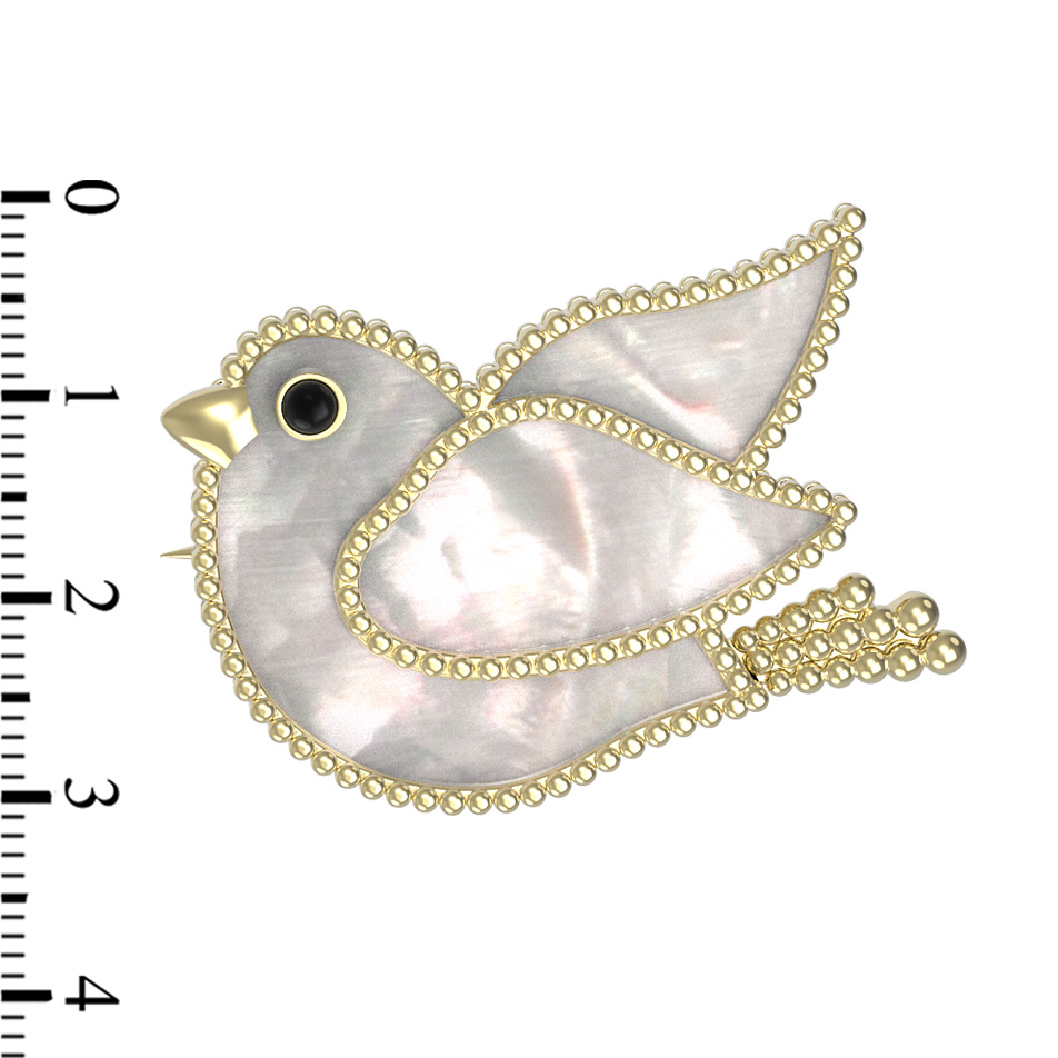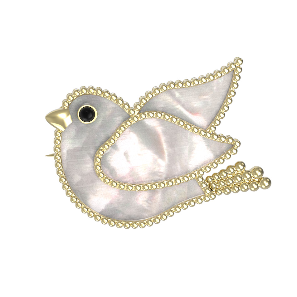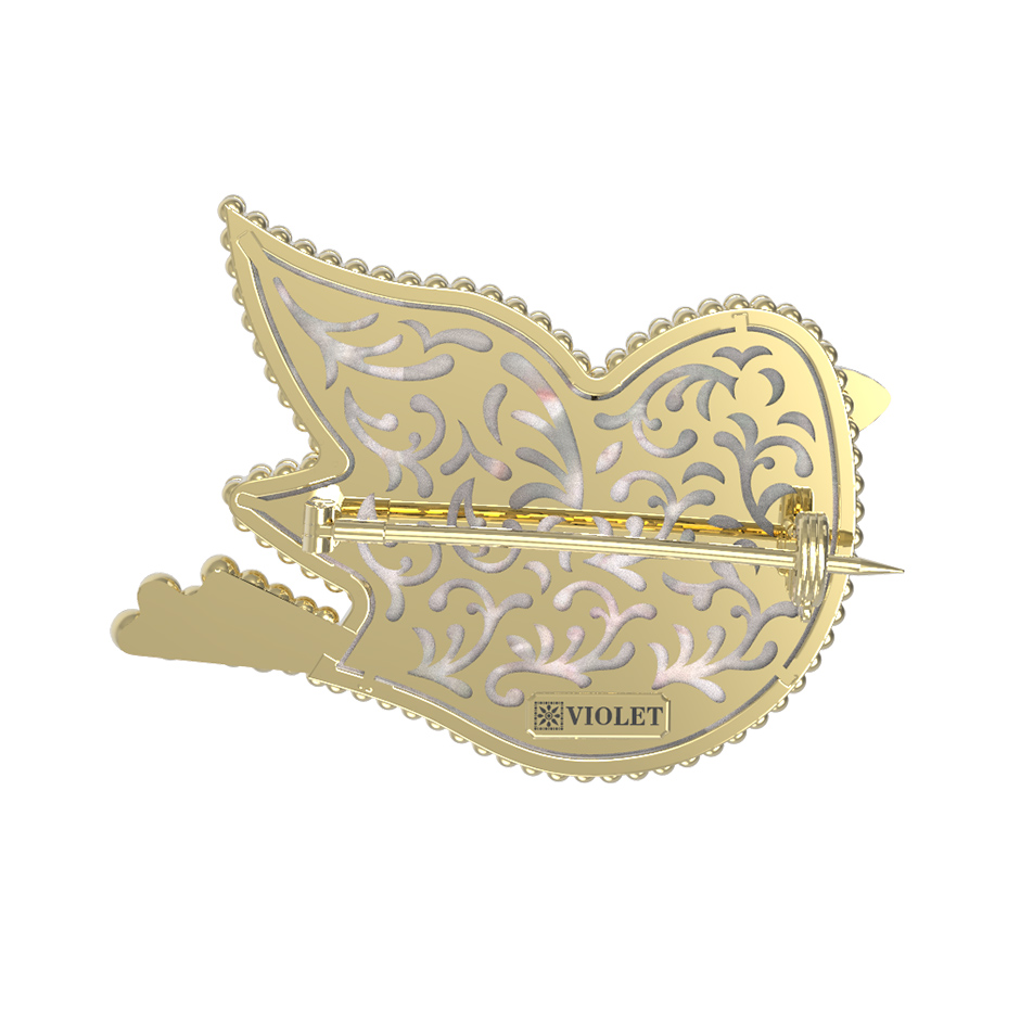 Брошь из лимонного золота c эмалью и перламутром