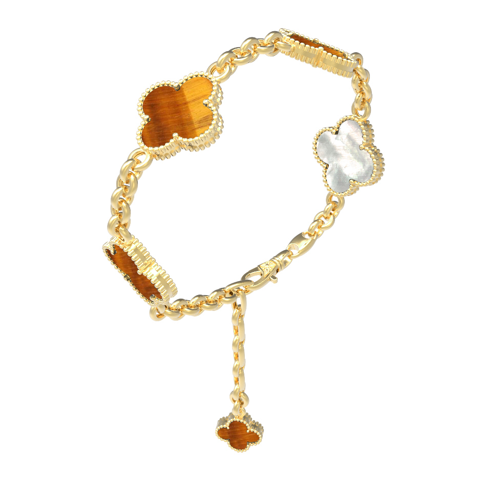 Браслет из лимонного золота c тигровым глазом и перламутром