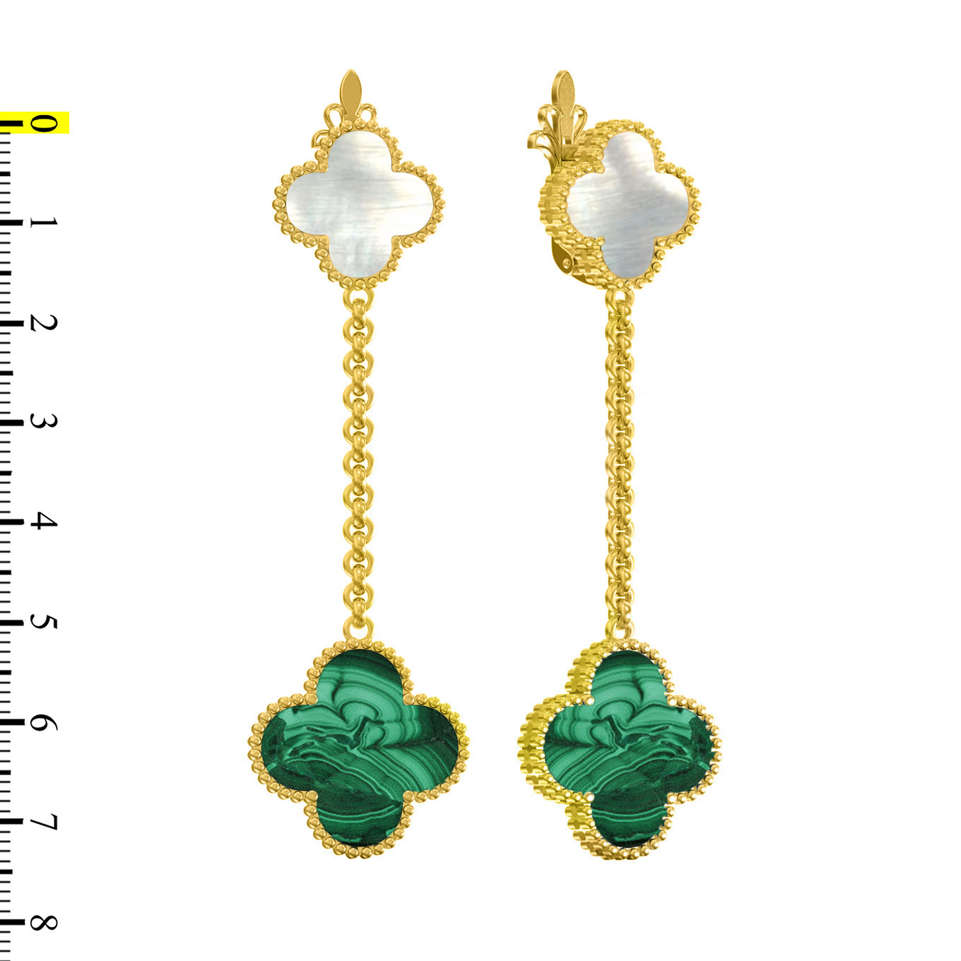 Серьги из лимонного золота c малахитом и перламутром