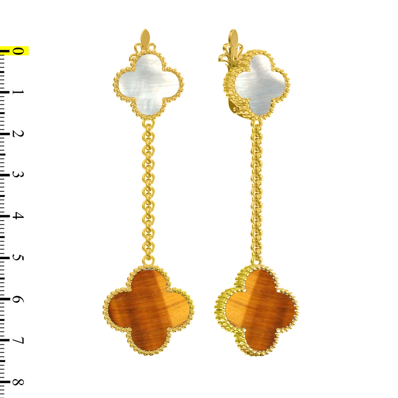 Серьги из лимонного золота c тигровым глазом и перламутром