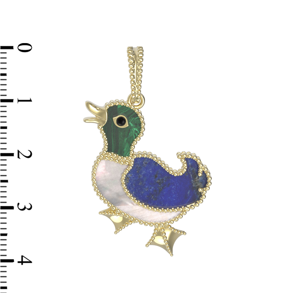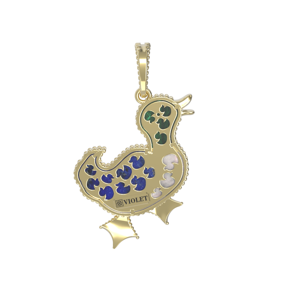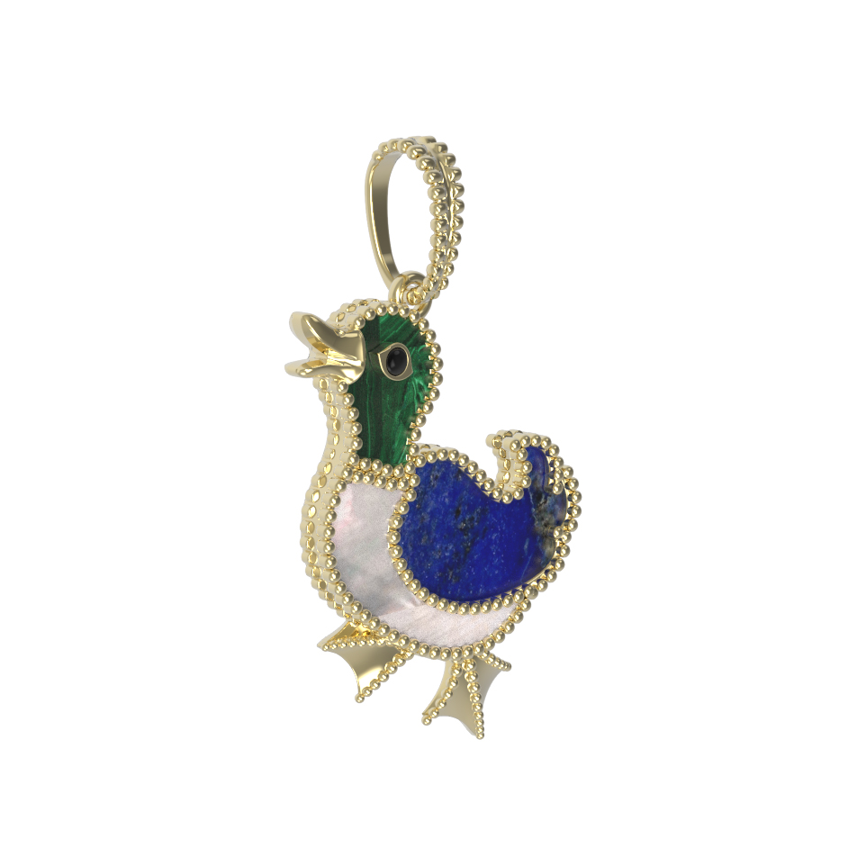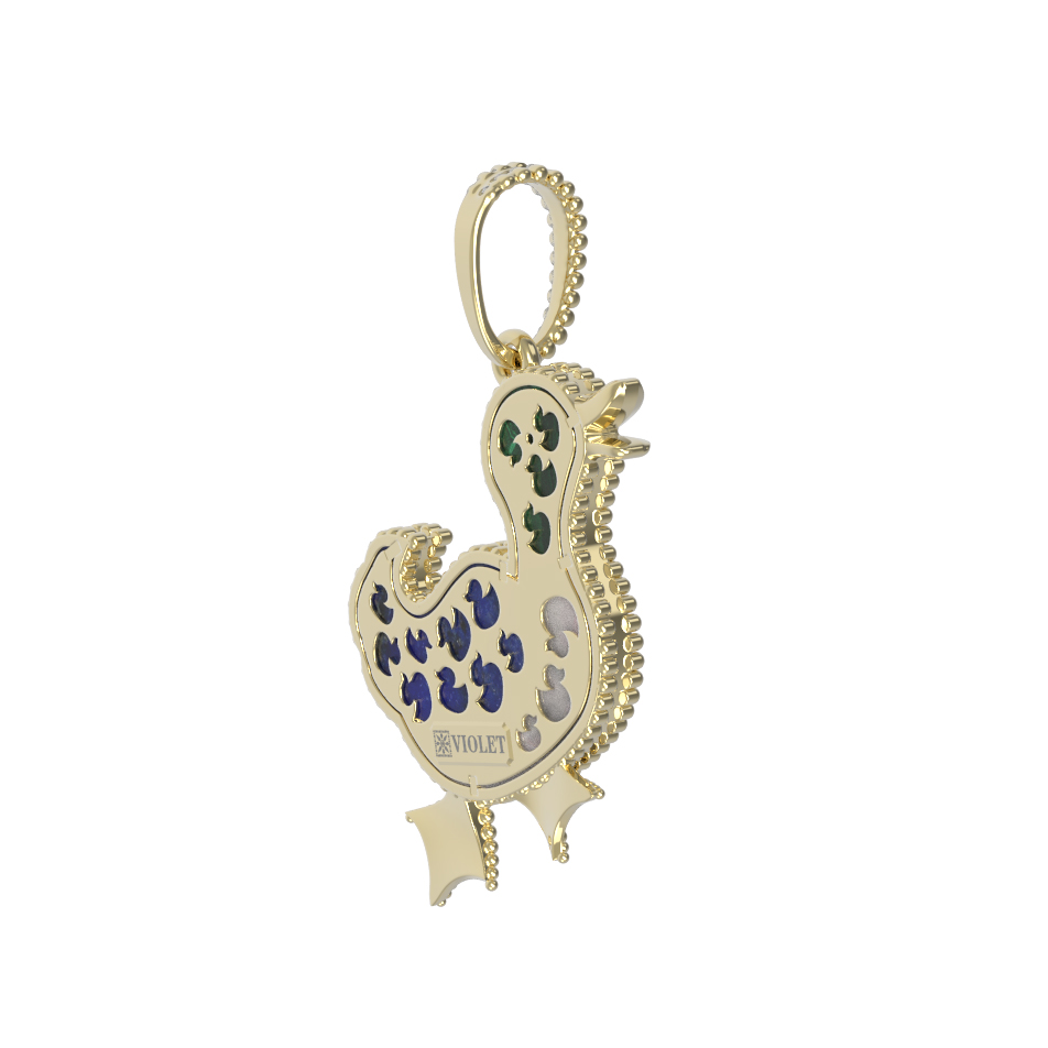 Подвеска из лимонного золота c эмалью, лазуритом, малахитом и перламутром