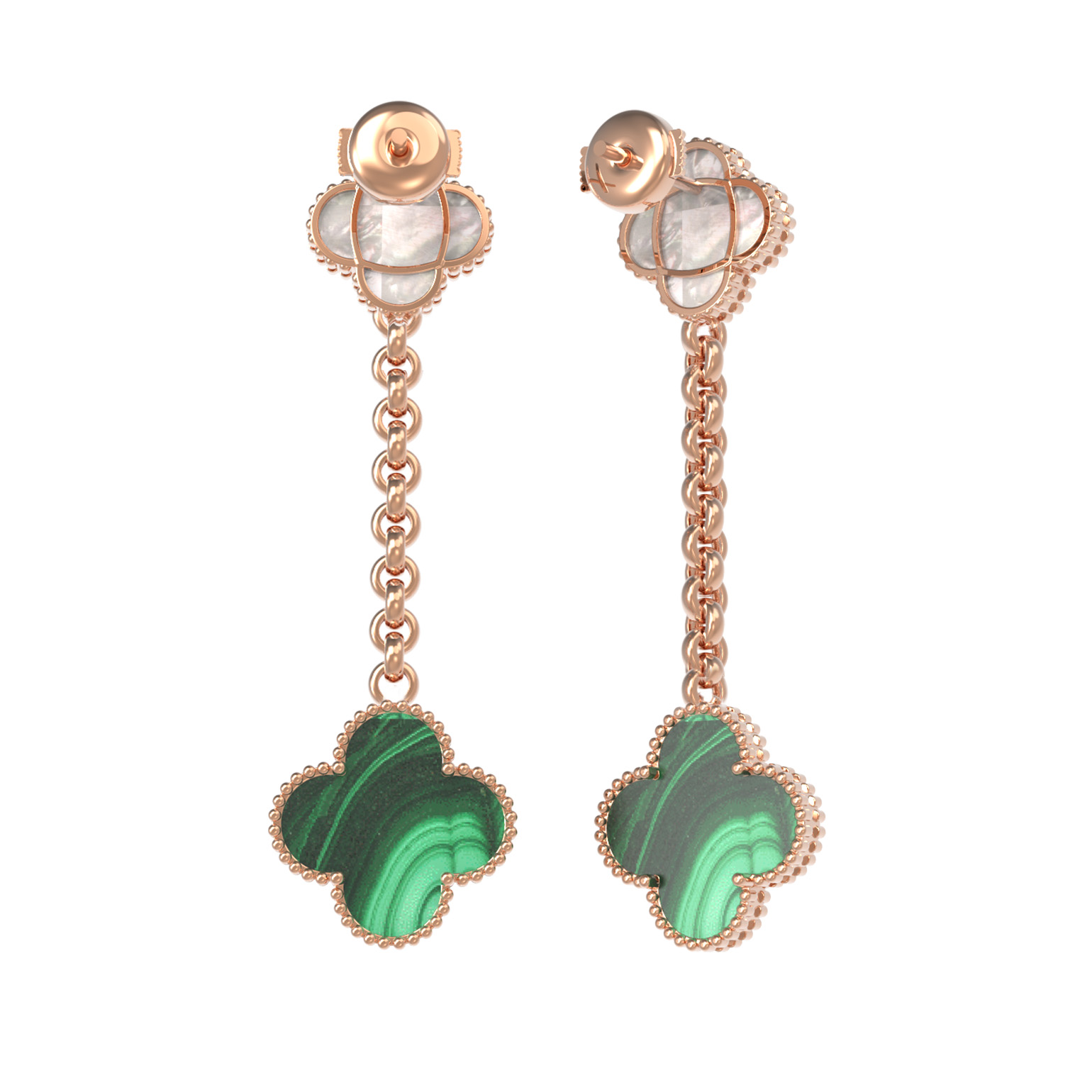 Серьги из золота c малахитом и перламутром