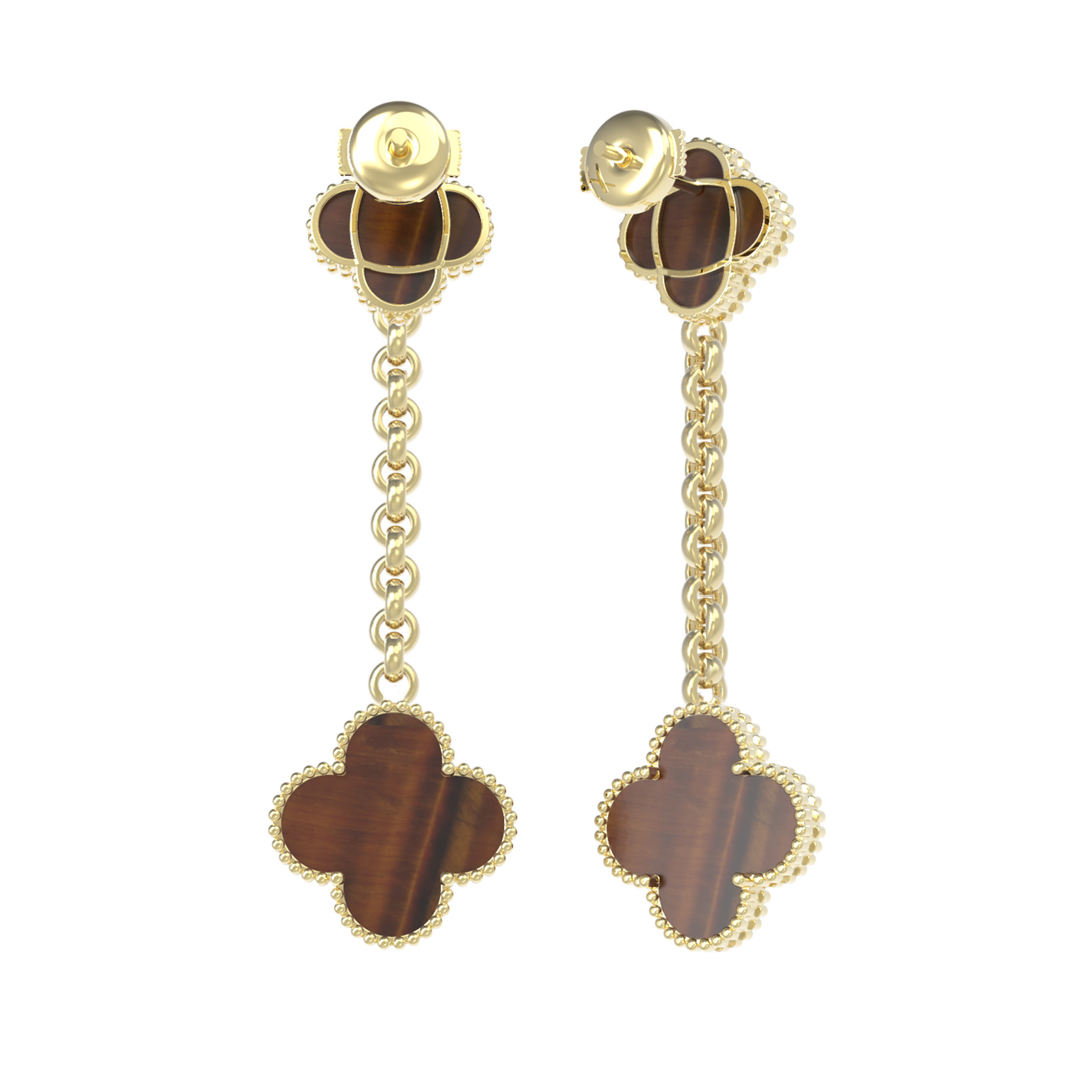 Серьги из лимонного золота c тигровым глазом