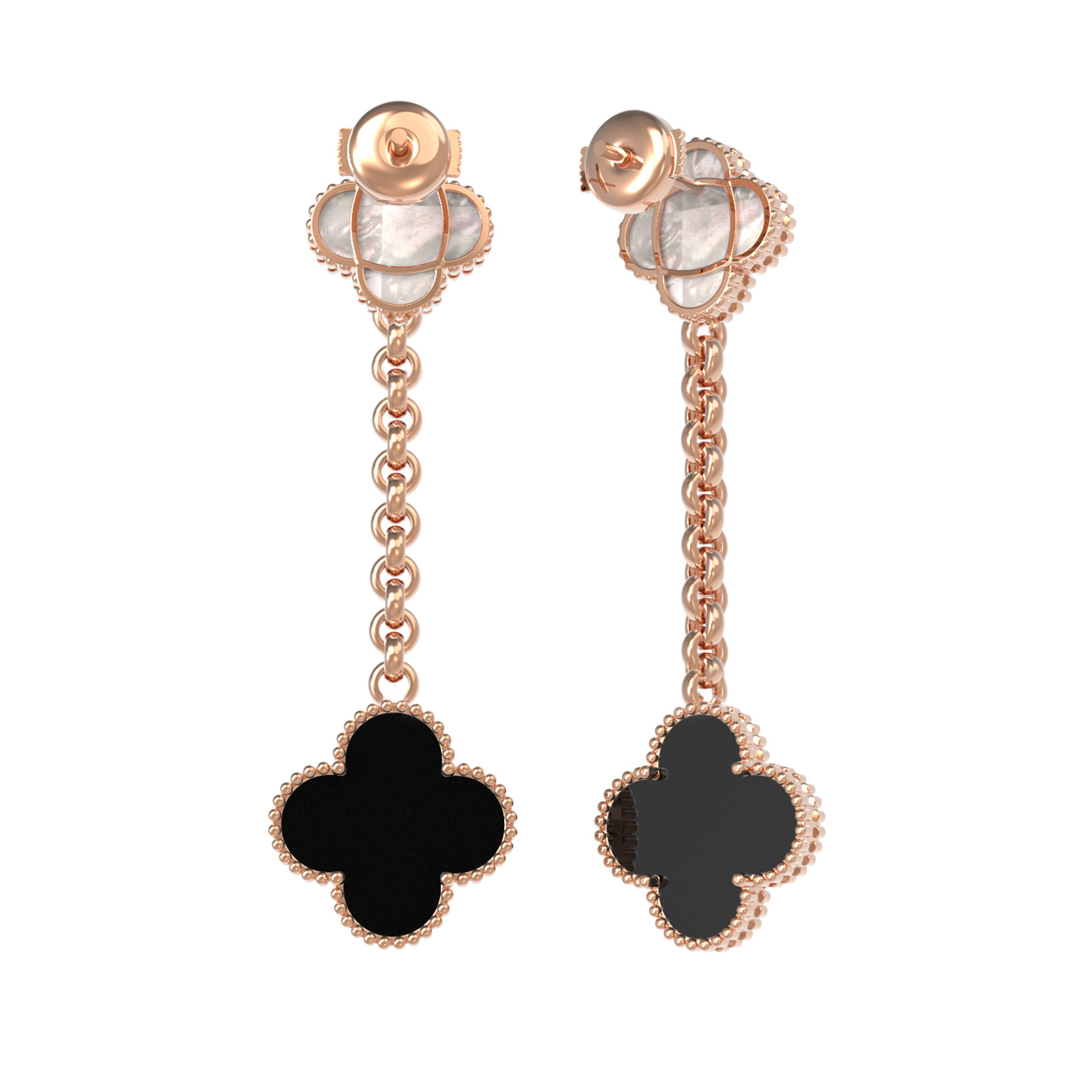 Серьги из золота c ониксом и перламутром