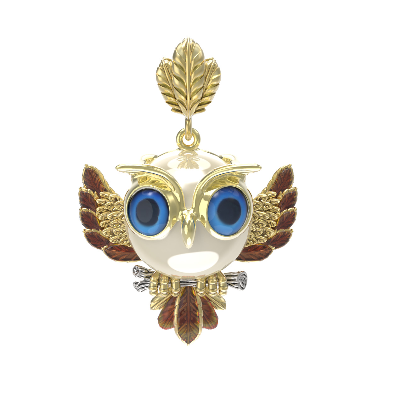 Подвеска из лимонного золота c эмалью и жемчугом
