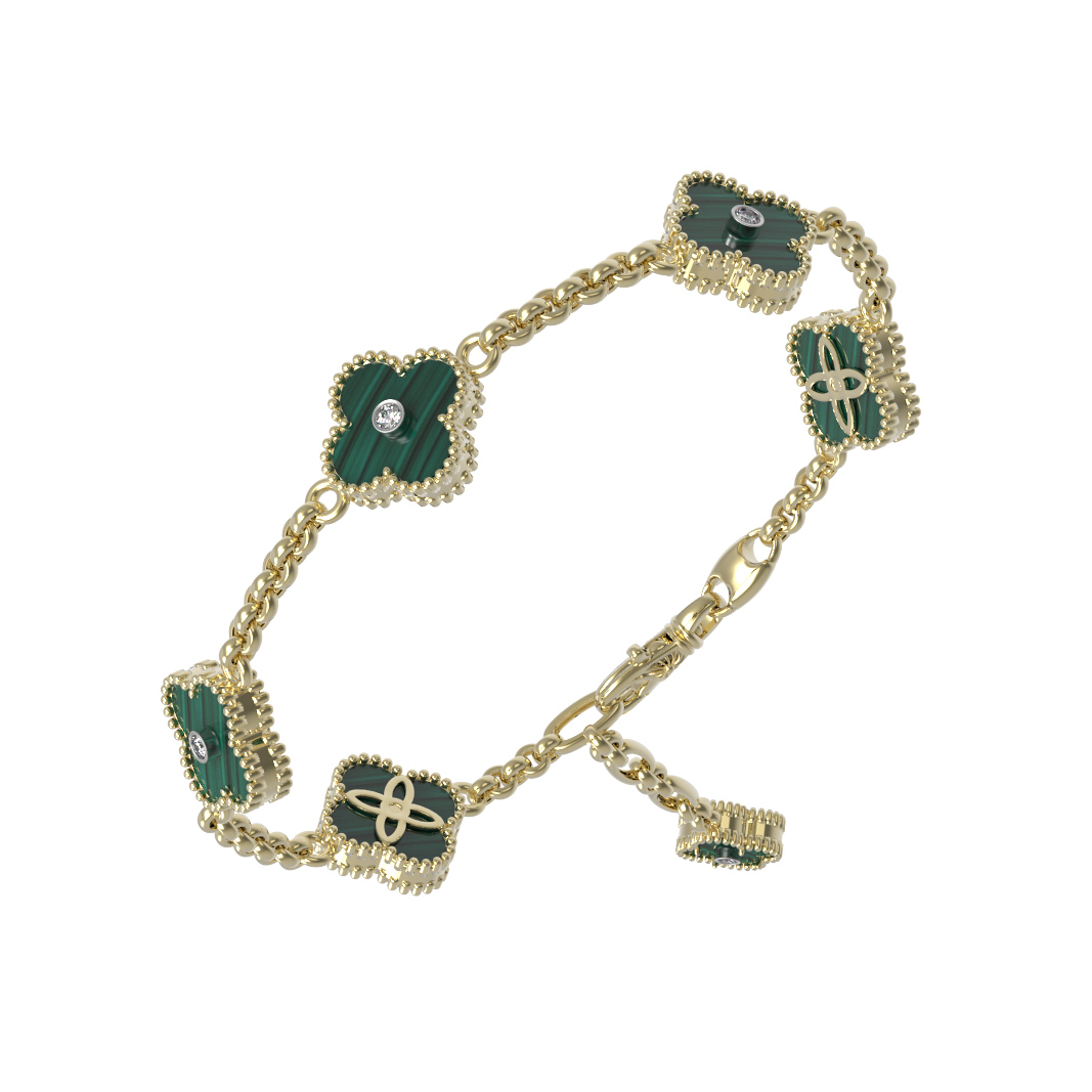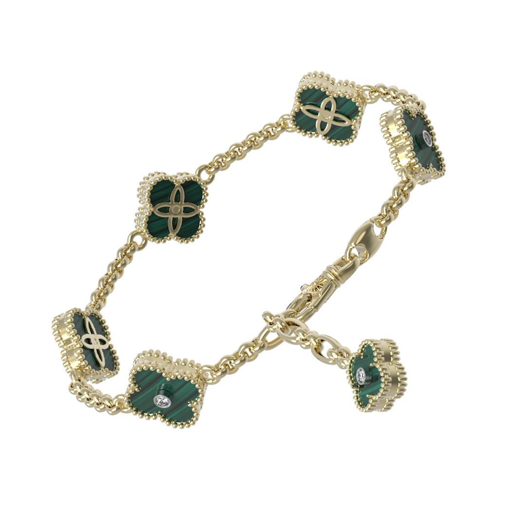 Браслет из лимонного золота c бриллиантами и малахитом