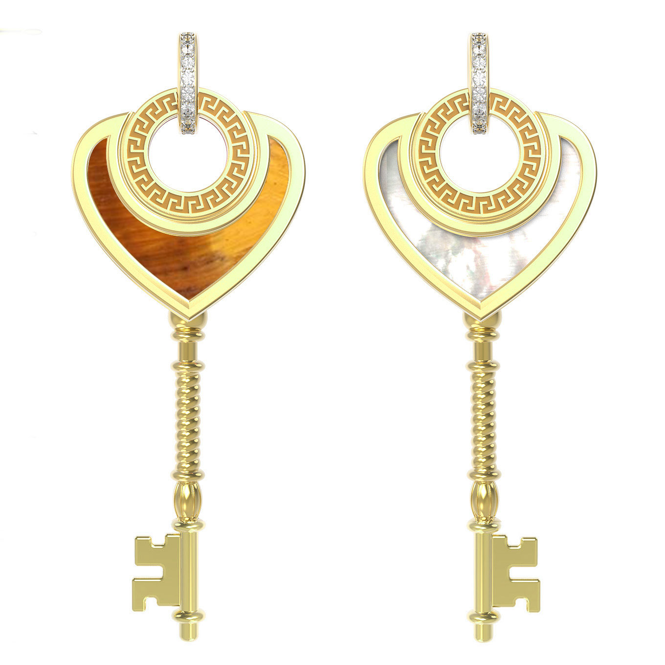 Подвеска из лимонного золота c фианитом, тигровым глазом и перламутром