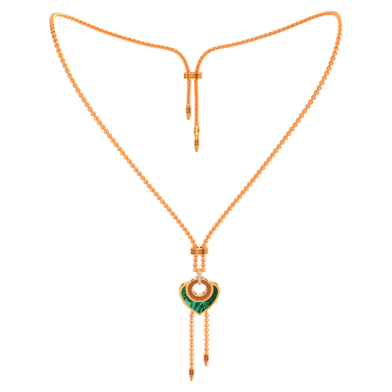• Колье из лимонного золота c фианитом, малахитом и перламутром