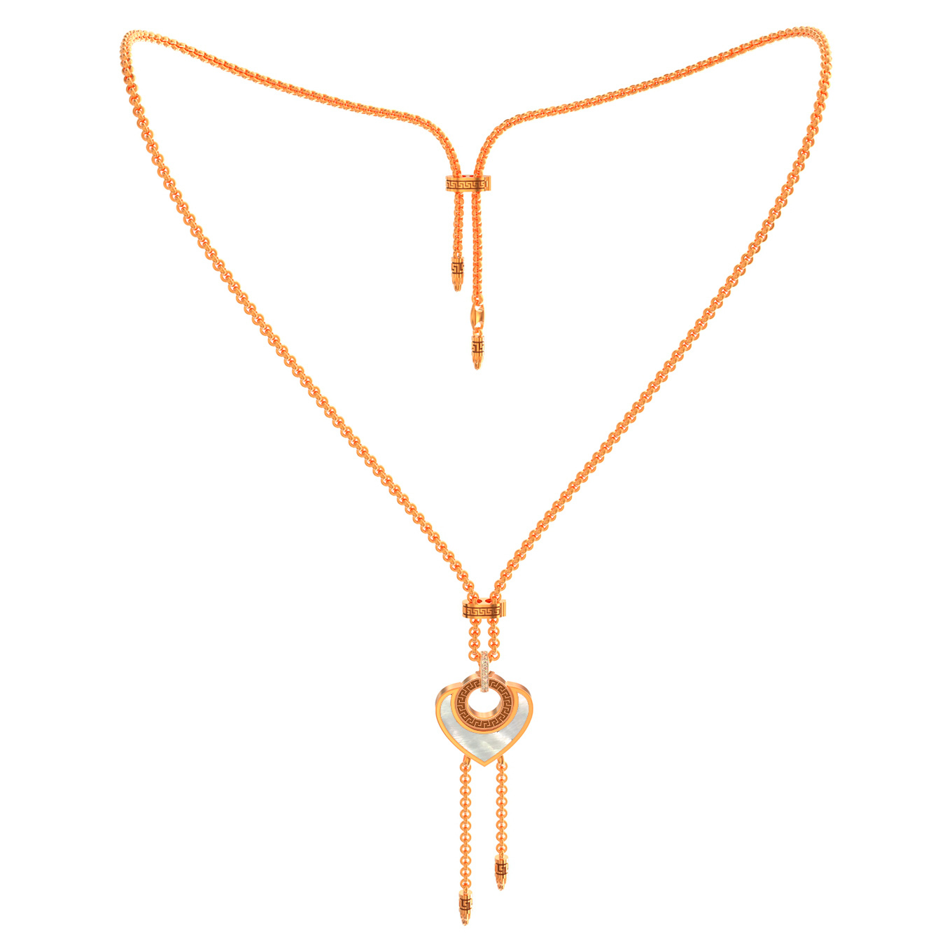 • Колье из лимонного золота c фианитом, тигровым глазом и перламутром