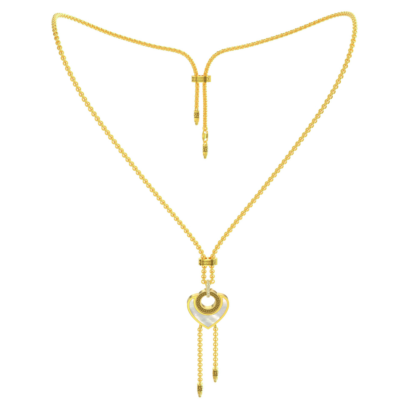 • Колье из лимонного золота c фианитом, ониксом и перламутром
