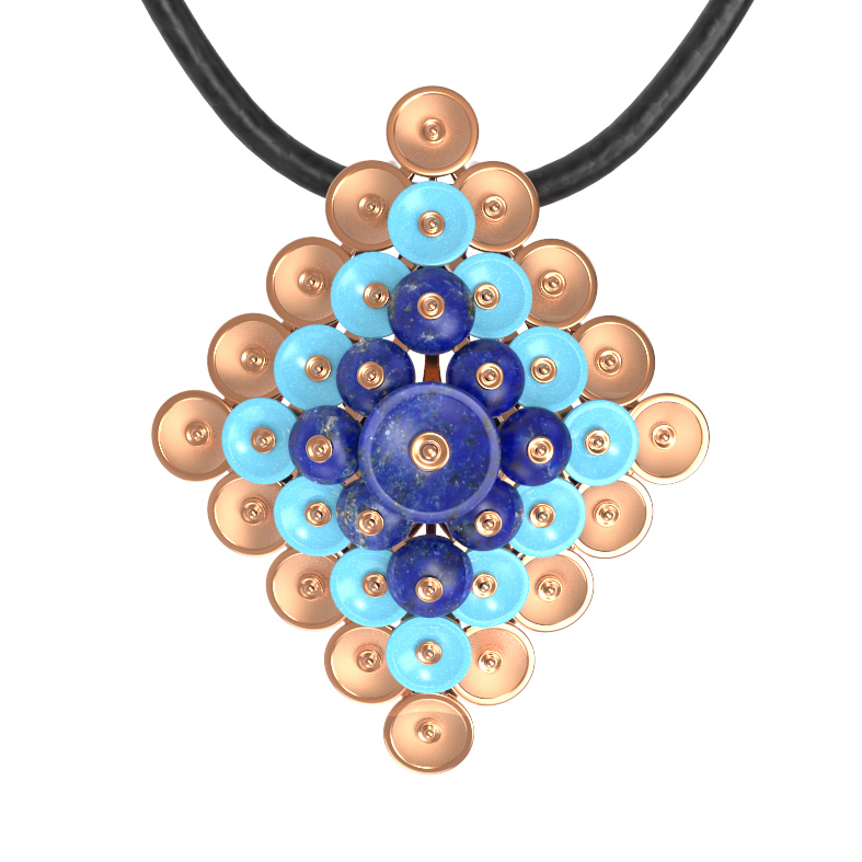 Подвеска из золота c бирюзой и лазуритом