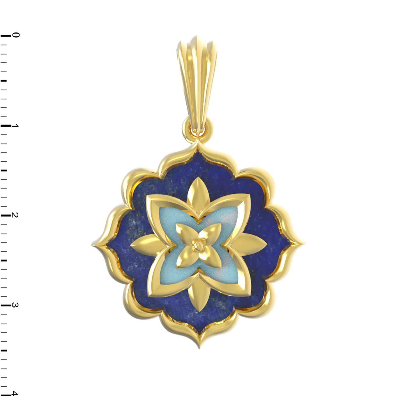 Подвеска из лимонного золота c бирюзой и лазуритом
