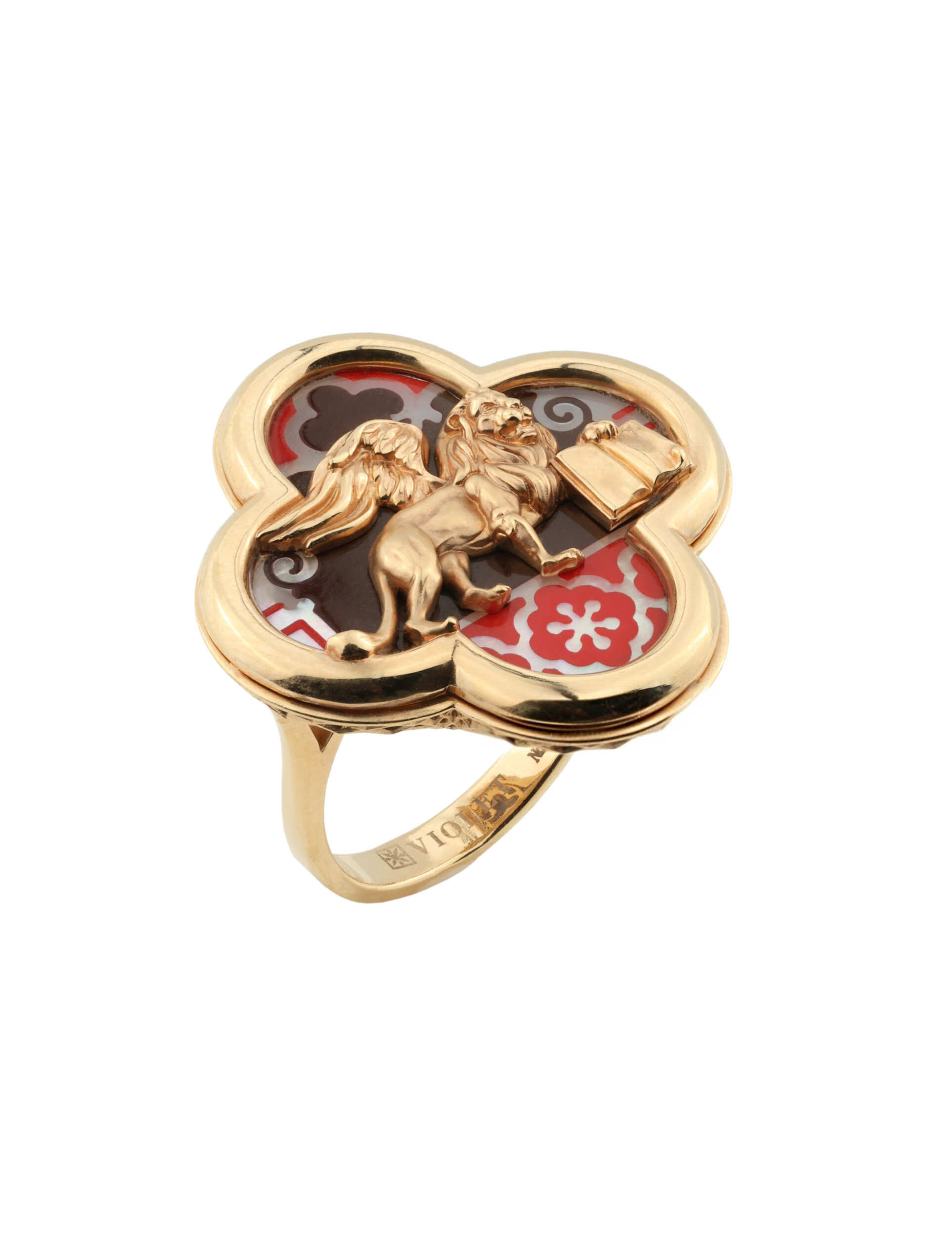 Кольцо из золота c эмалью и перламутром
