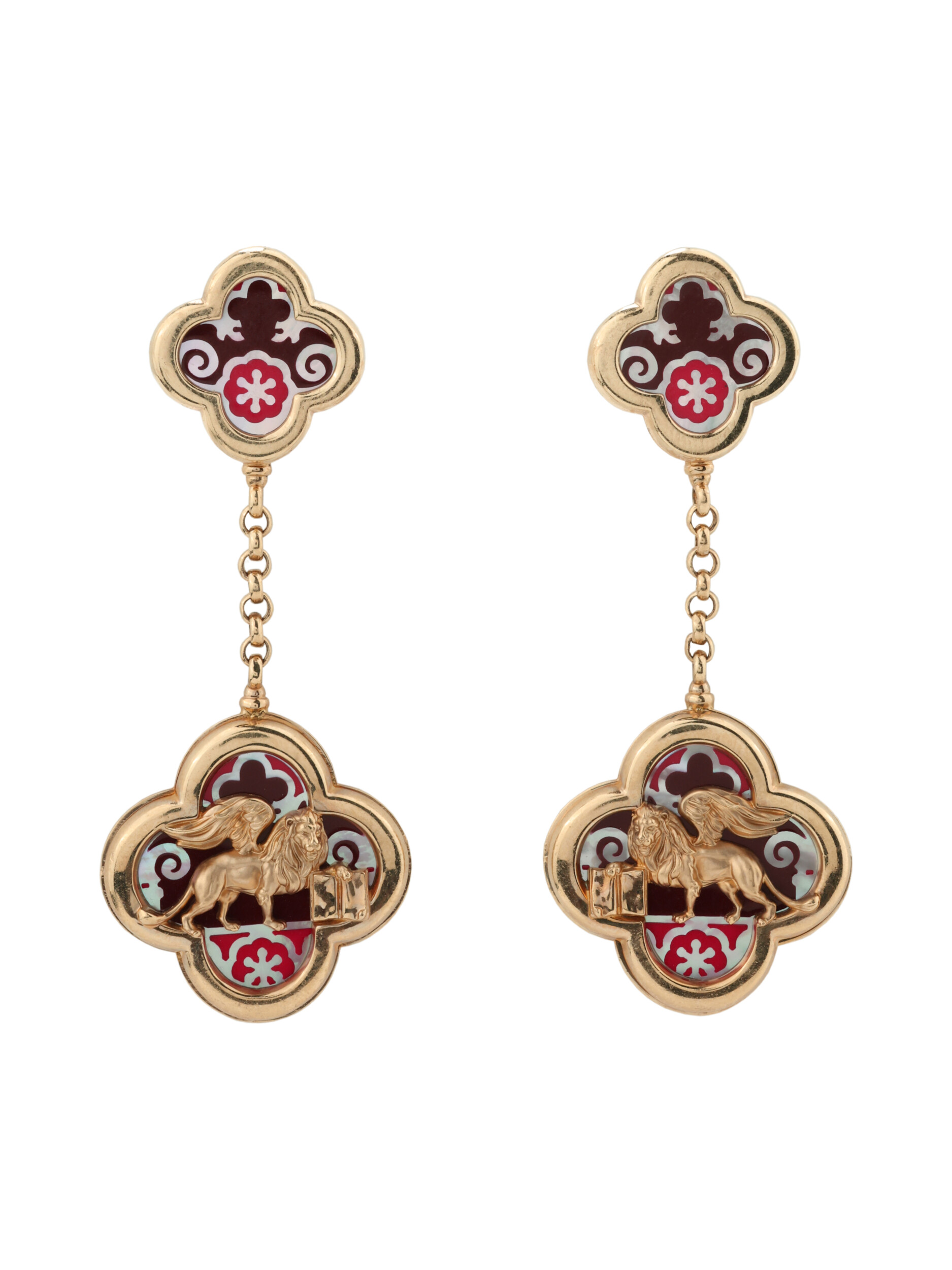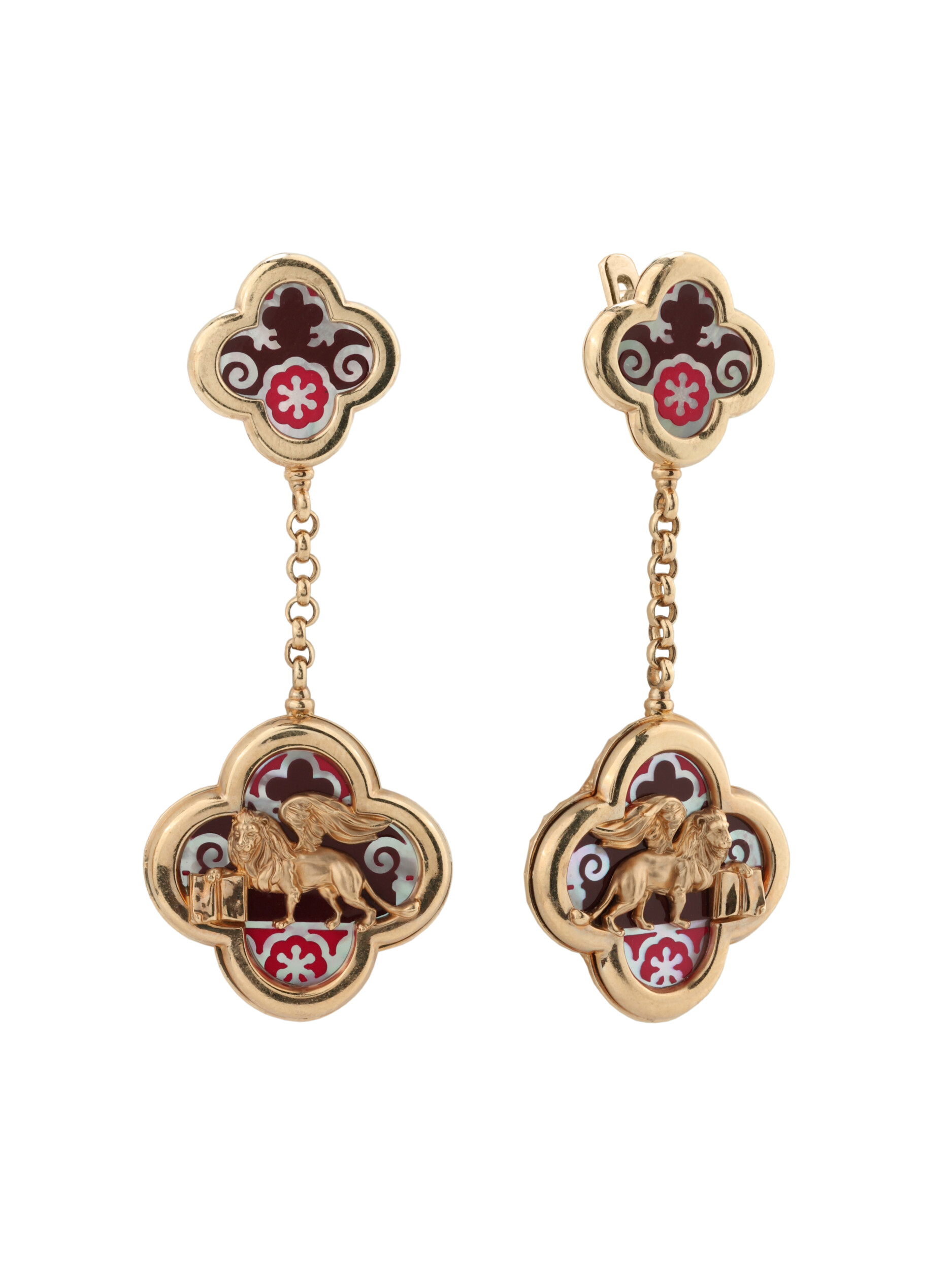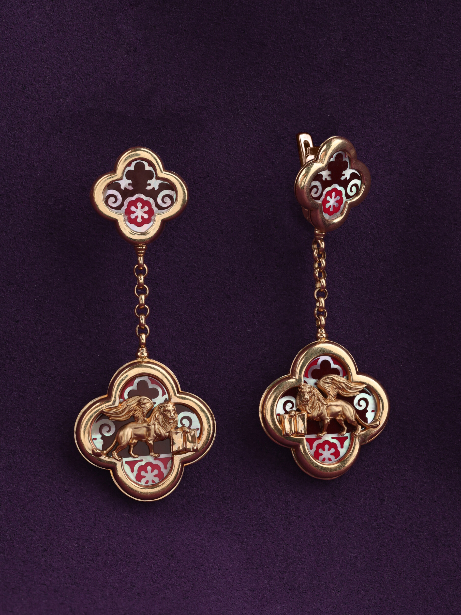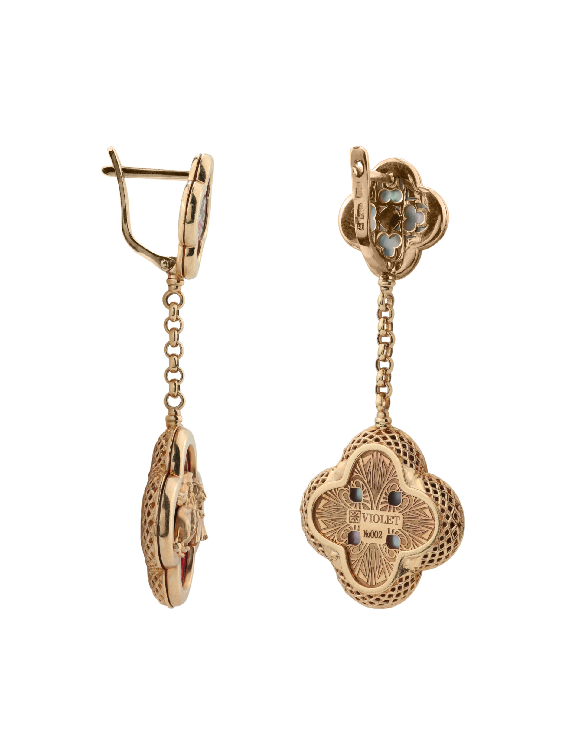 Серьги из золота c эмалью и перламутром