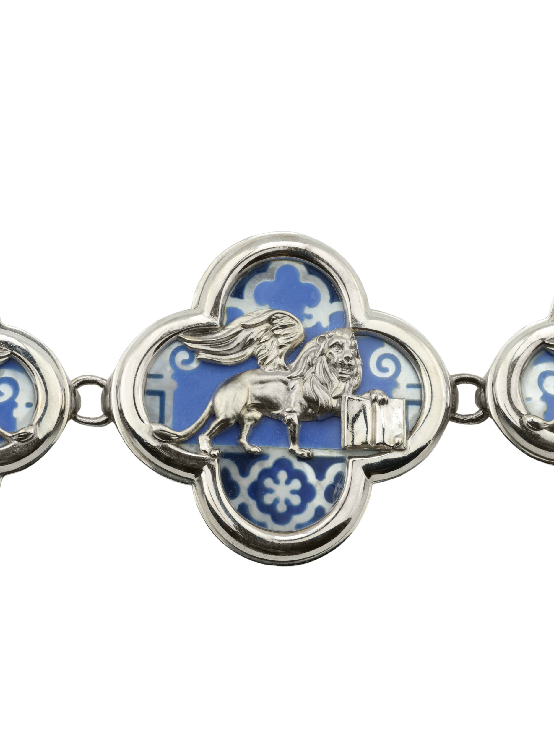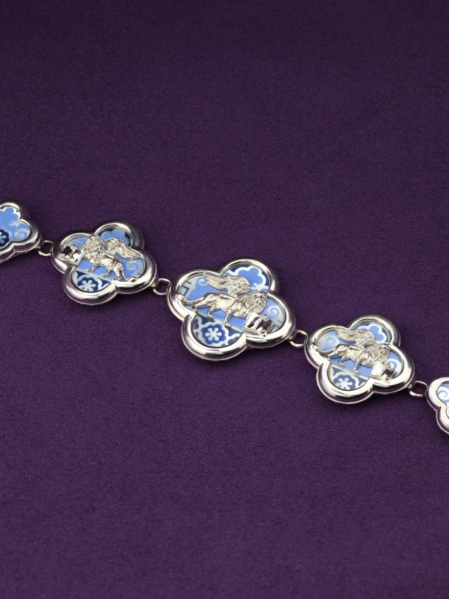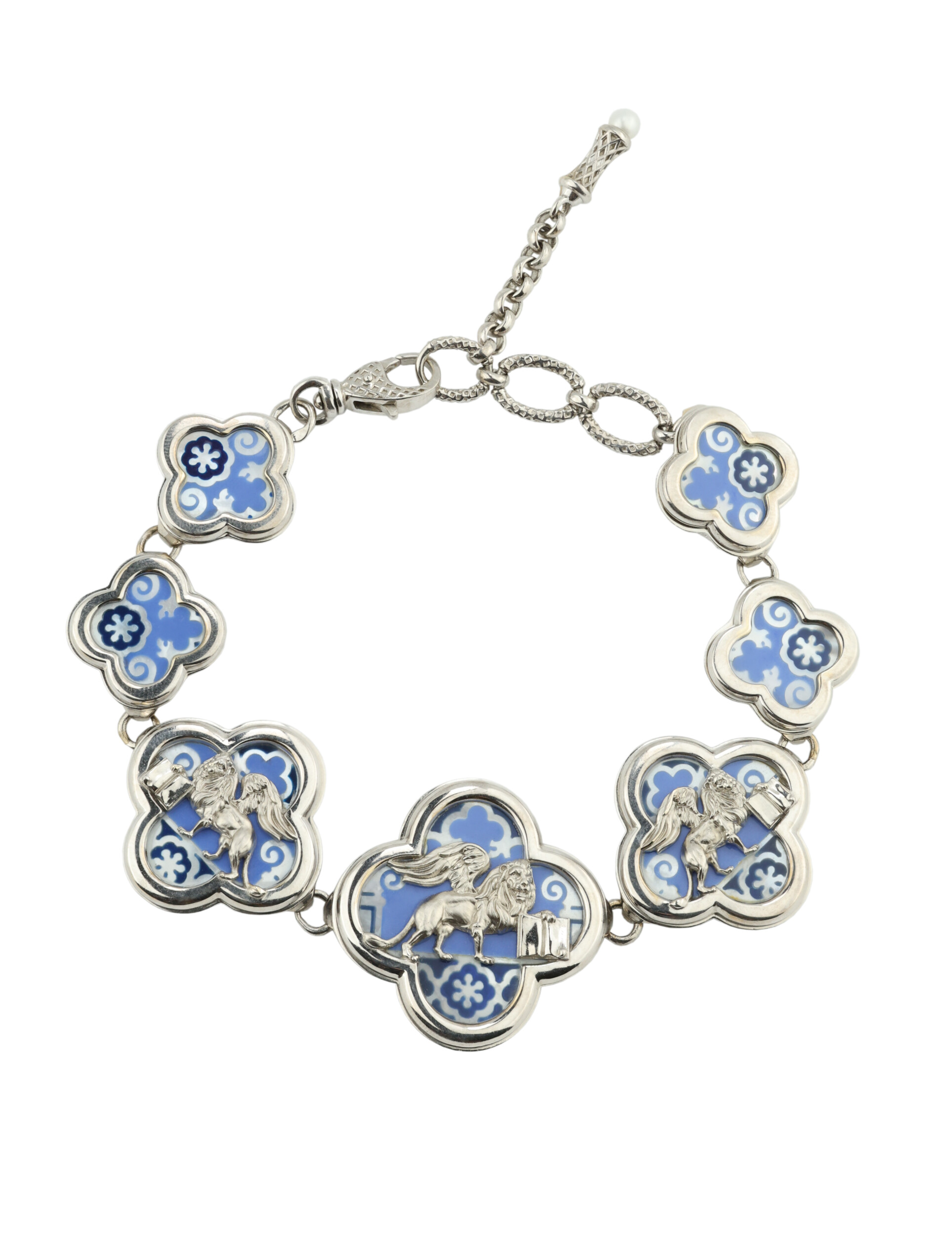Браслет из белого золота c эмалью, жемчугом и перламутром