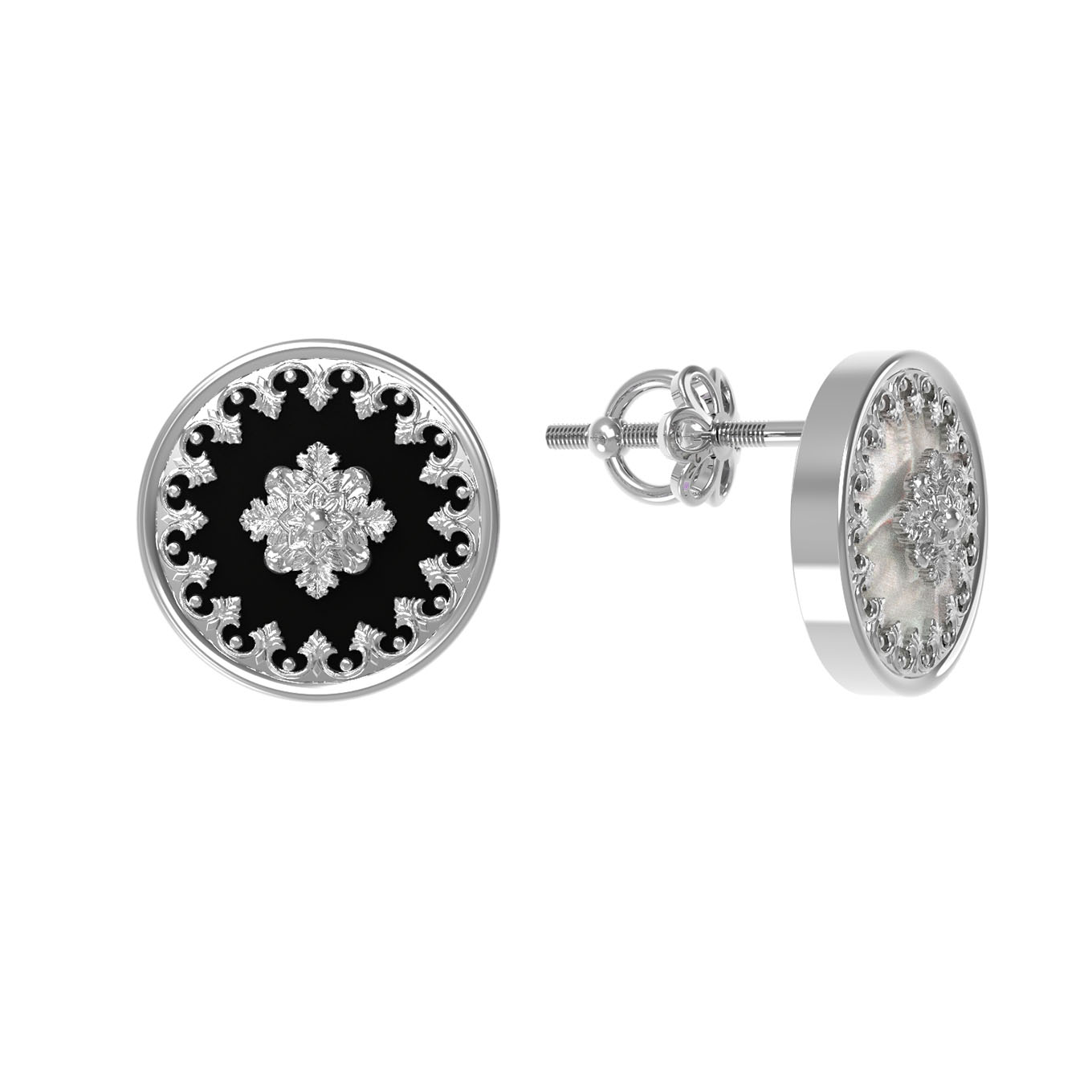 Серьги из белого золота c ониксом и перламутром