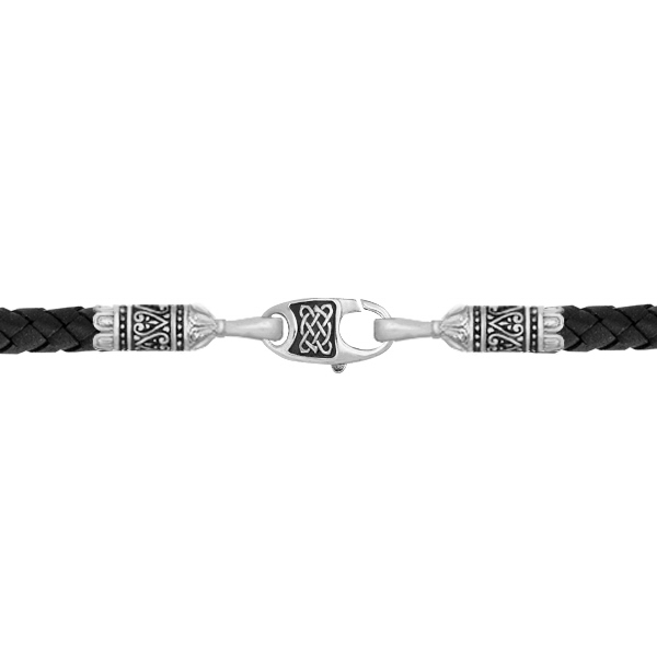 Гайтан из белого золота c кожаным шнурком