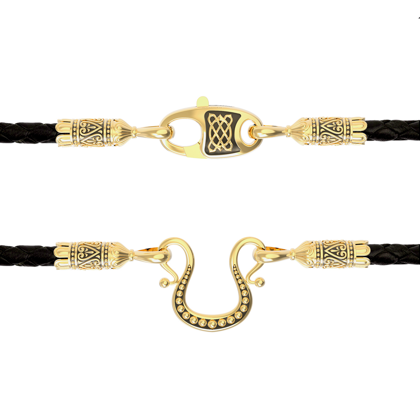 Гайтан из лимонного золота c кожаным шнурком