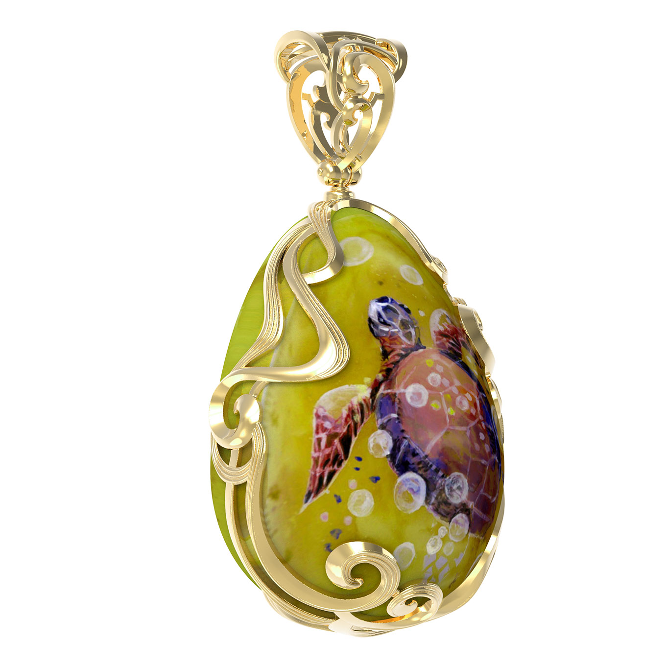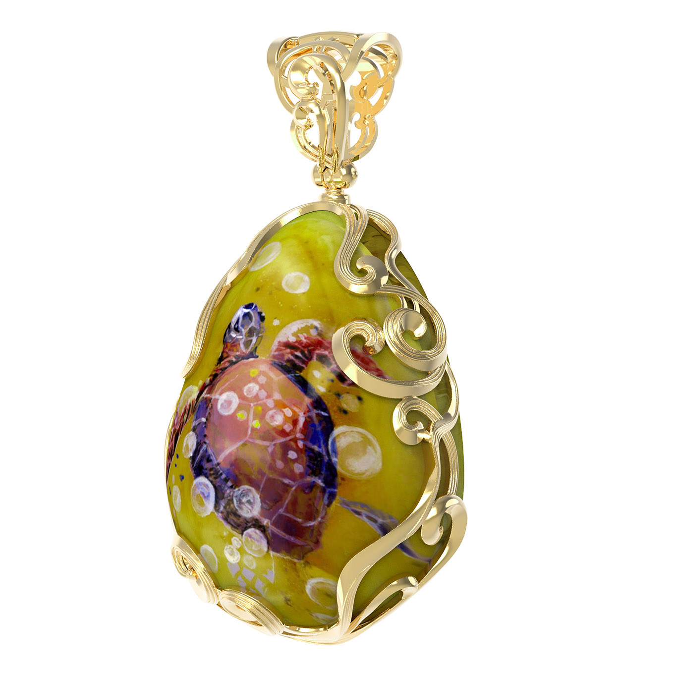 Подвеска из лимонного золота c росписным янтарём