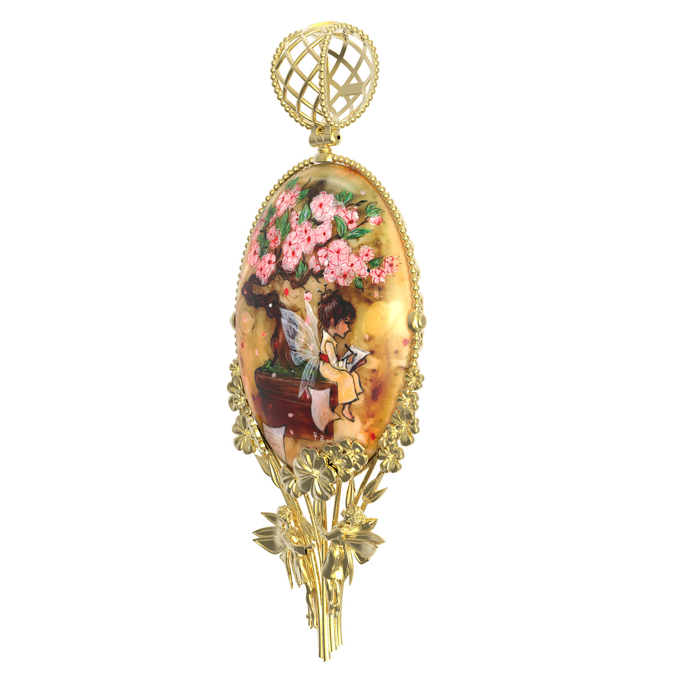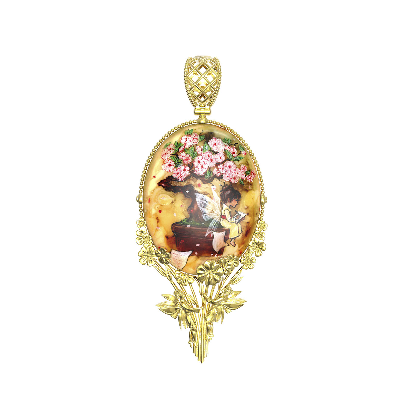 Подвеска из лимонного золота c росписным янтарём