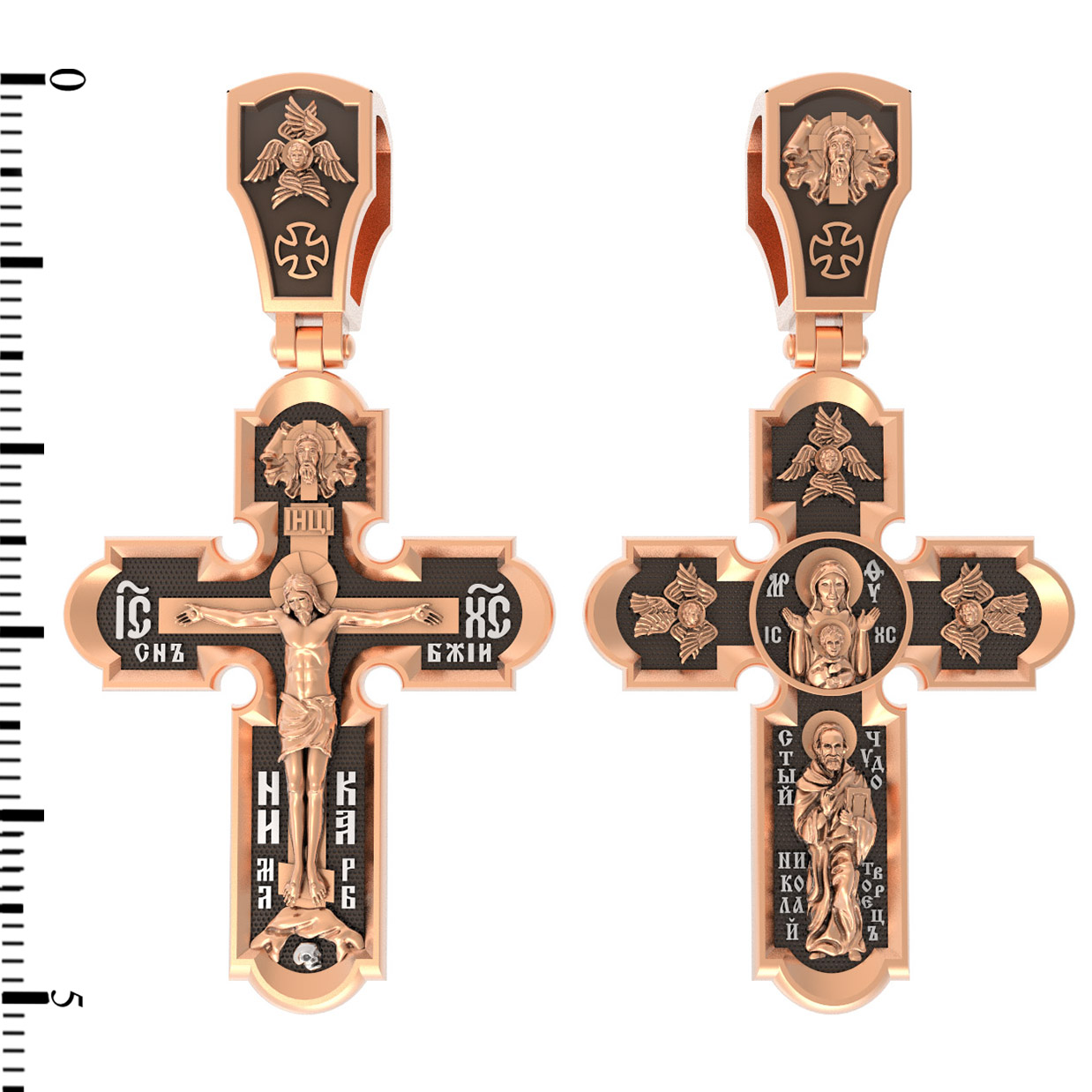 У основания креста в полный рост изображен самый любимый святой Православной Церкви — Николай Чудотворец. Святой почитается как целитель болезней, покровитель путешествующих, особенно по морю, помощник в торговле, учебе, а также в поисках достойного супруга.