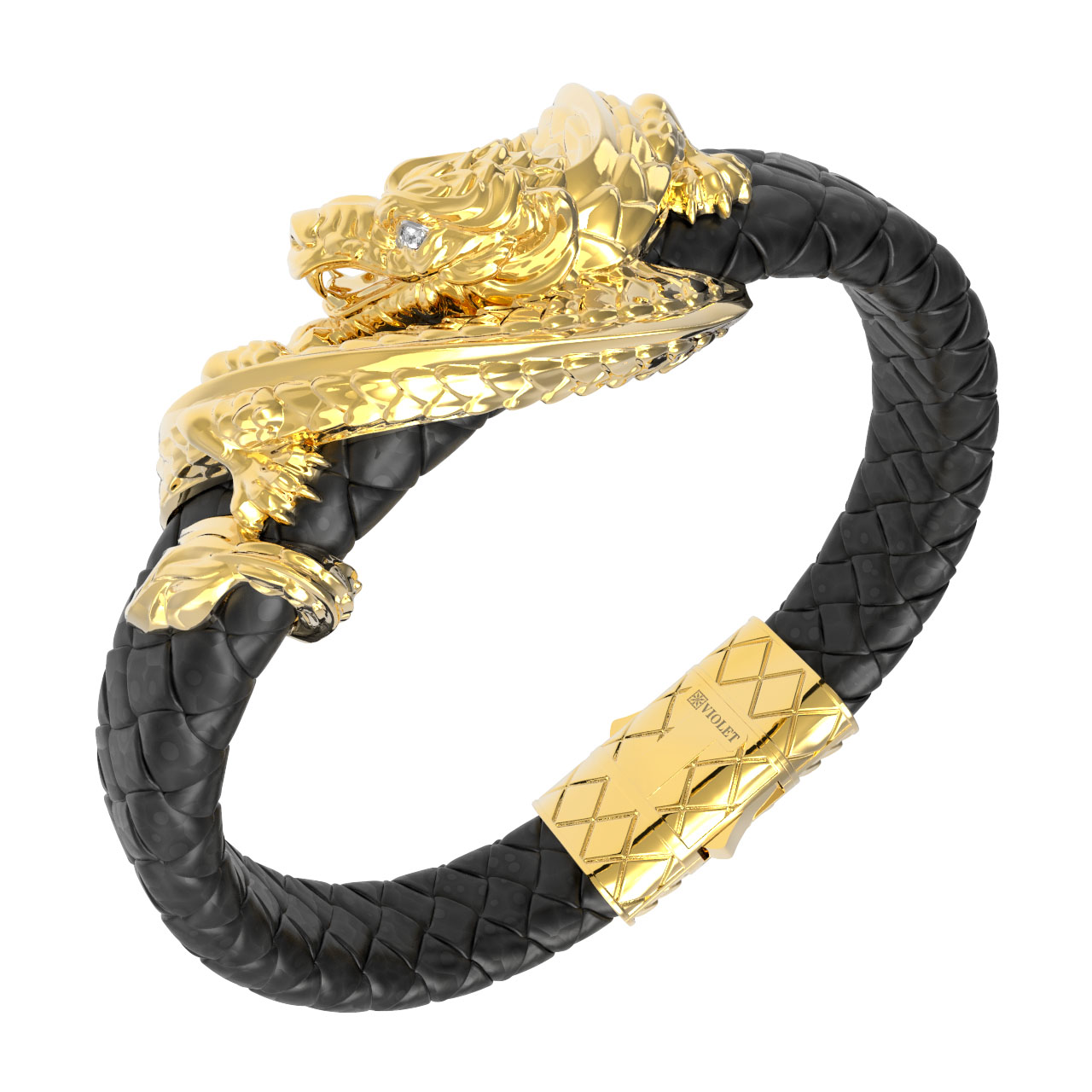 Браслет из лимонного золота c бриллиантами и кожаным шнурком