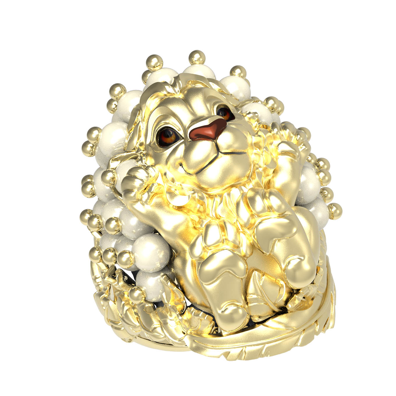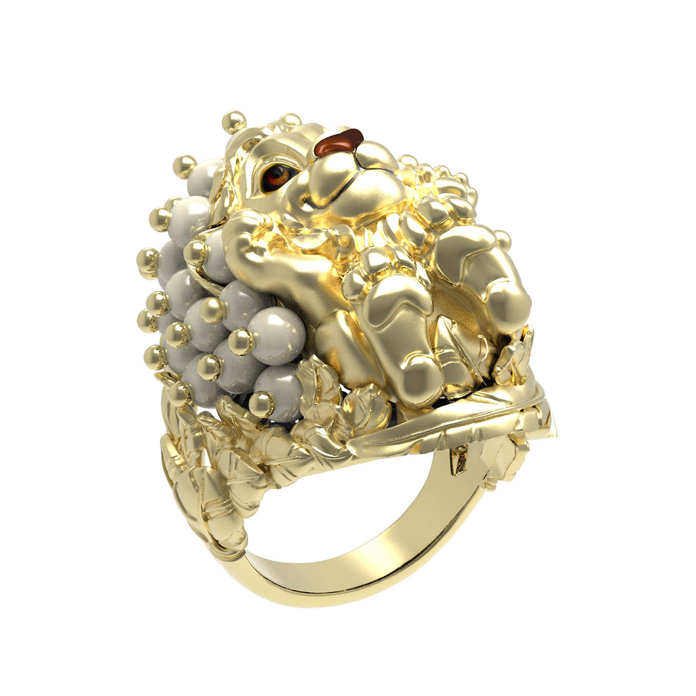 Кольцо из лимонного золота c эмалью и жемчугом
