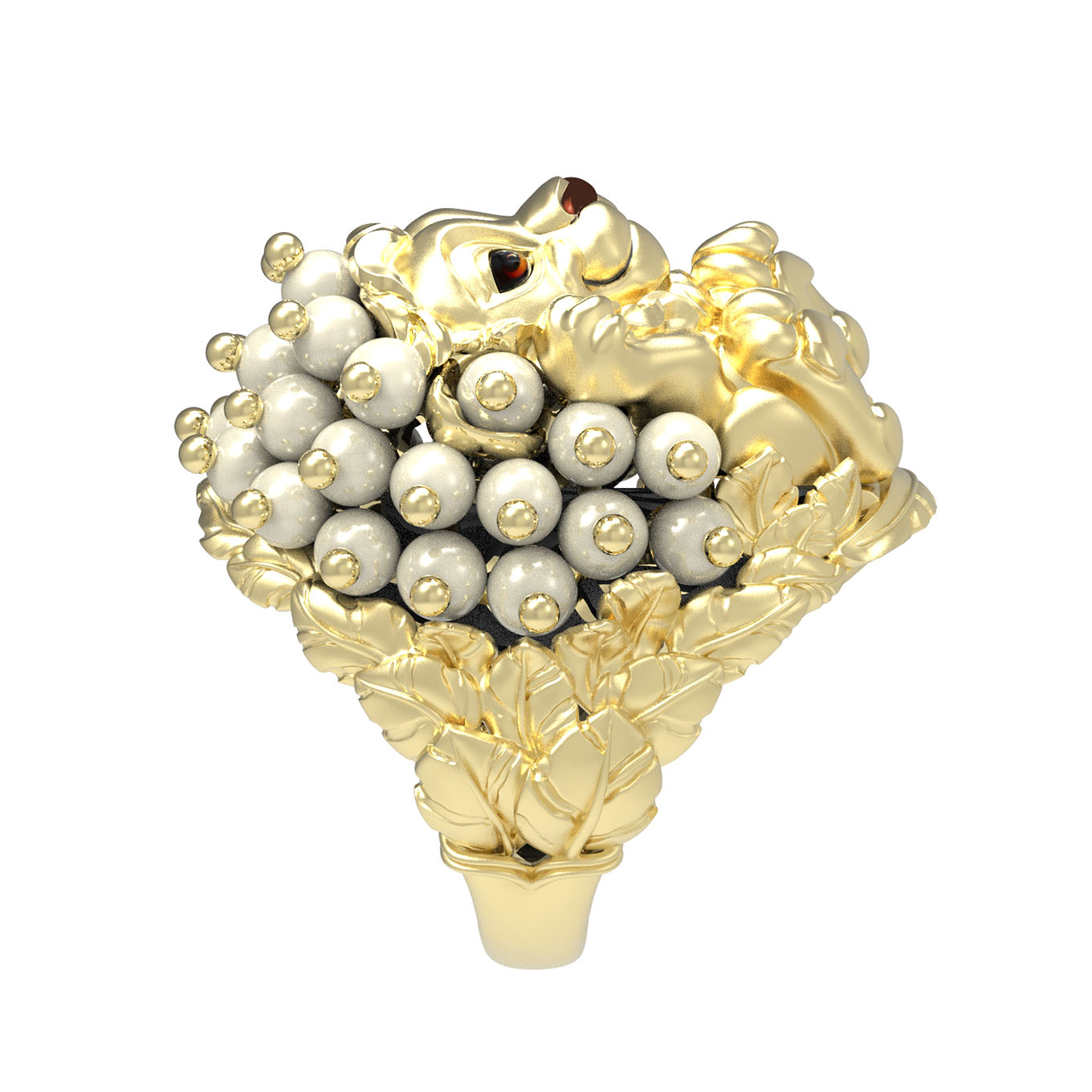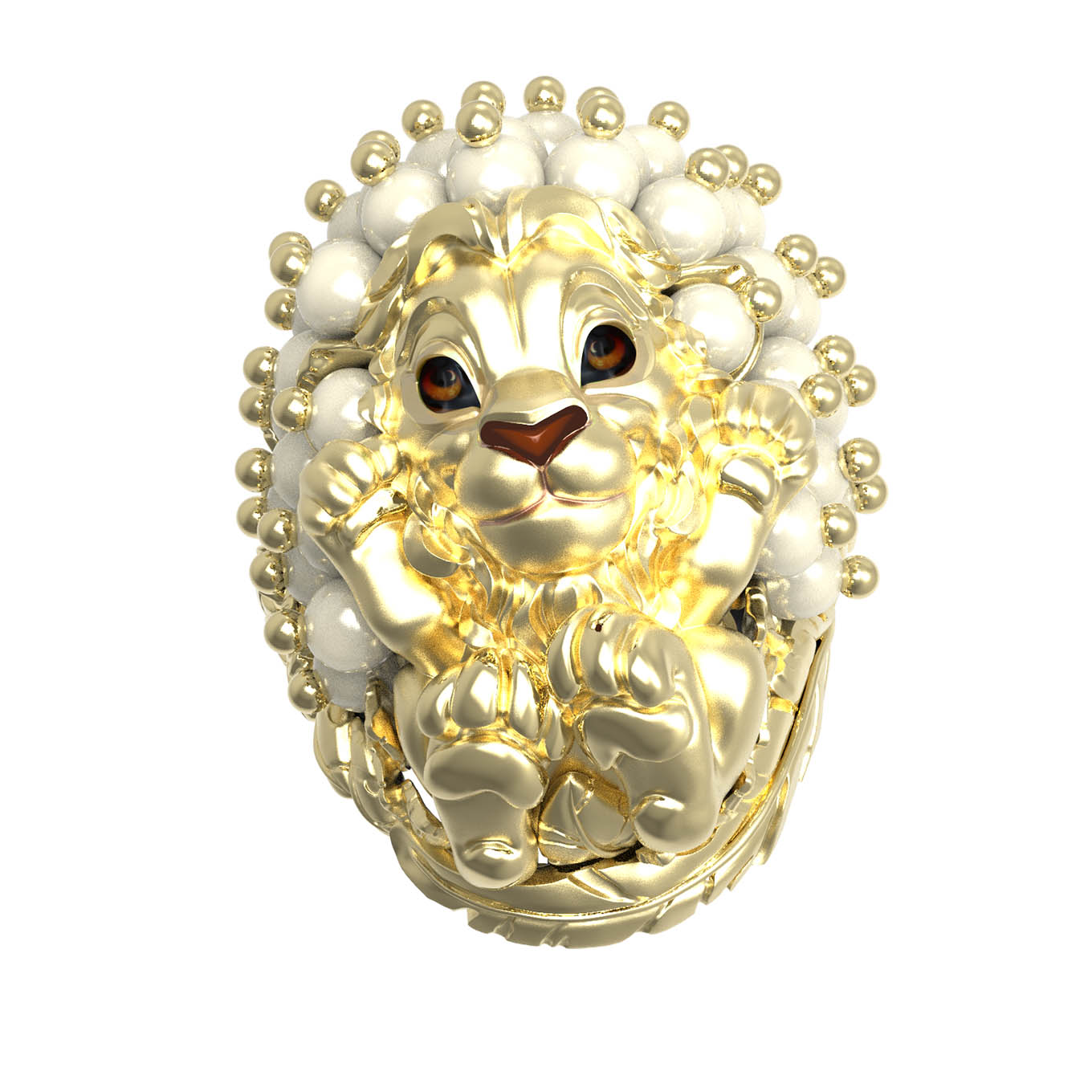 Кольцо из лимонного золота c эмалью и жемчугом