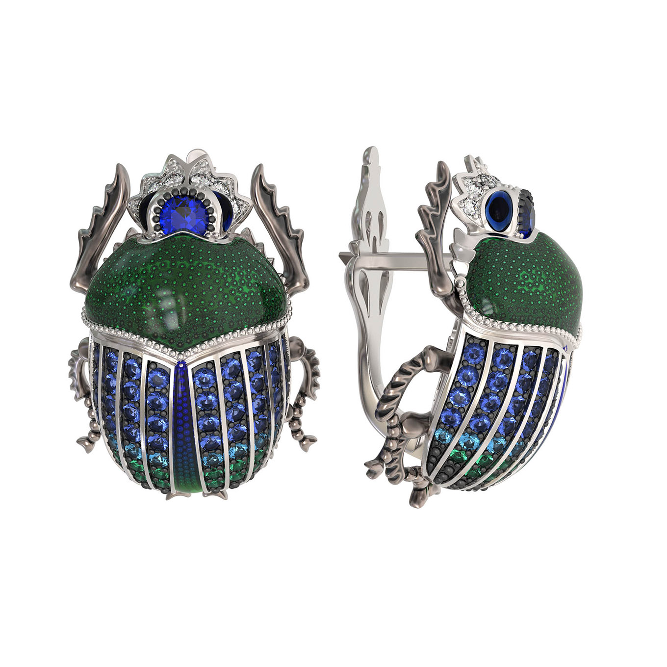 Серьги из белого золота c эмалью, фианитом и сапфиром