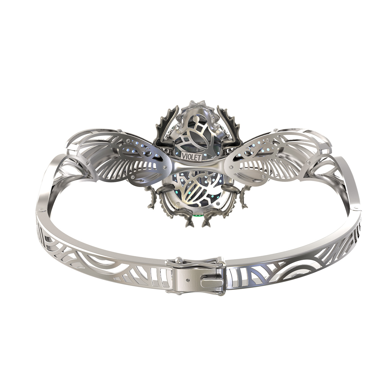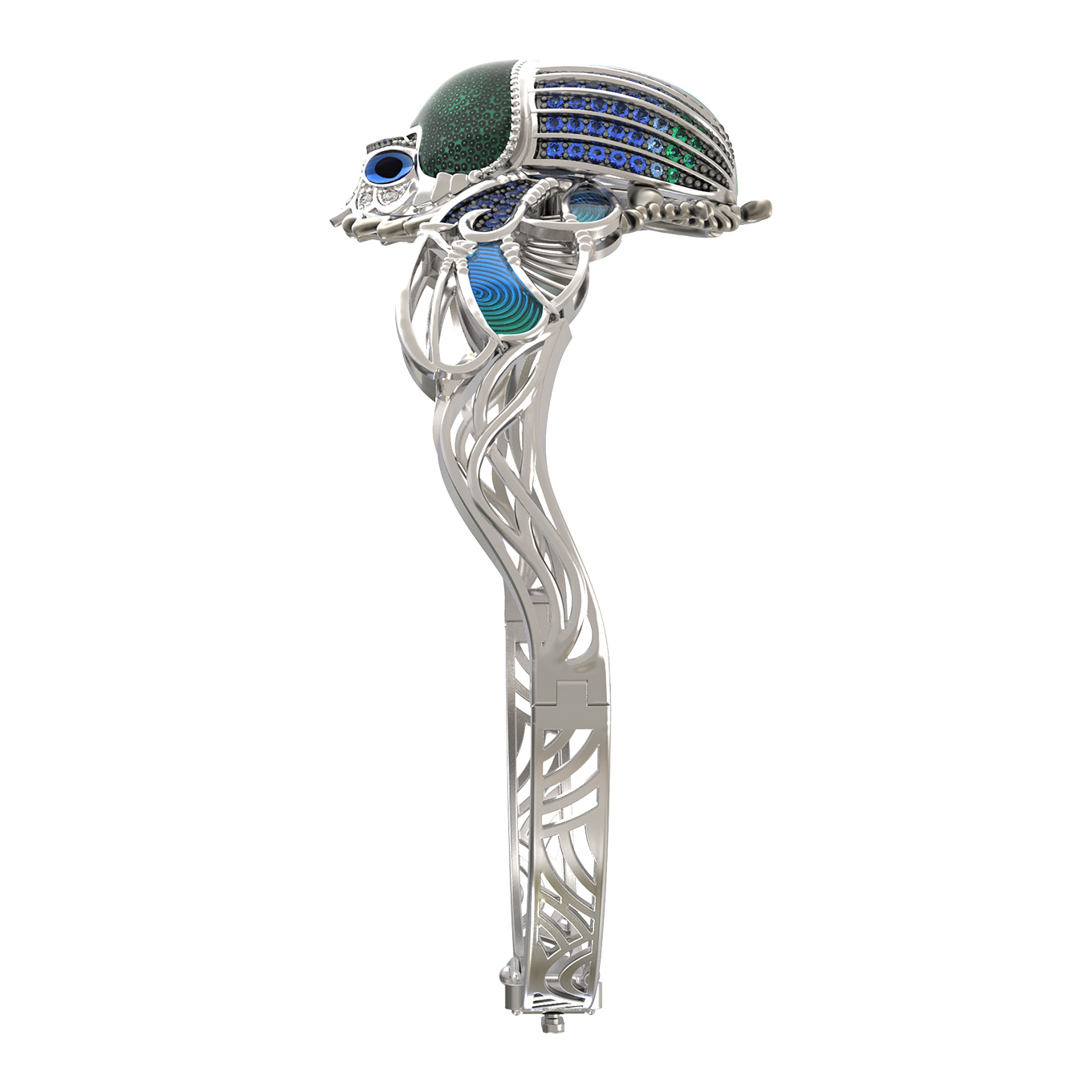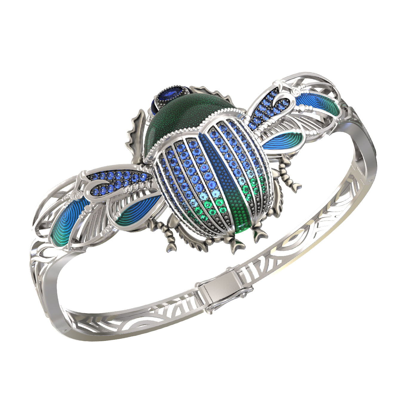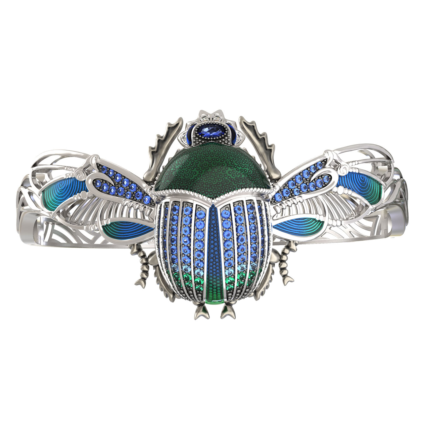 Браслет из белого золота c эмалью, фианитом, сапфиром и эмалью