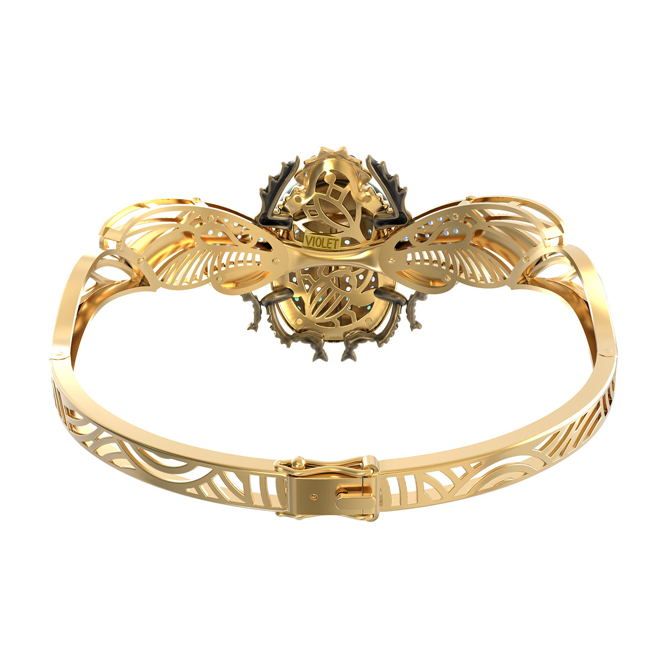 Браслет из лимонного золота c эмалью, фианитом, турмалином и эмалью
