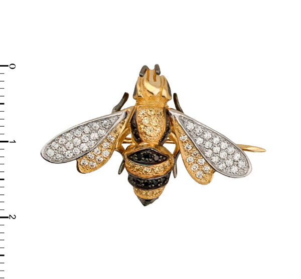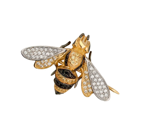 Брошь из лимонного золота c эмалью и фианитом