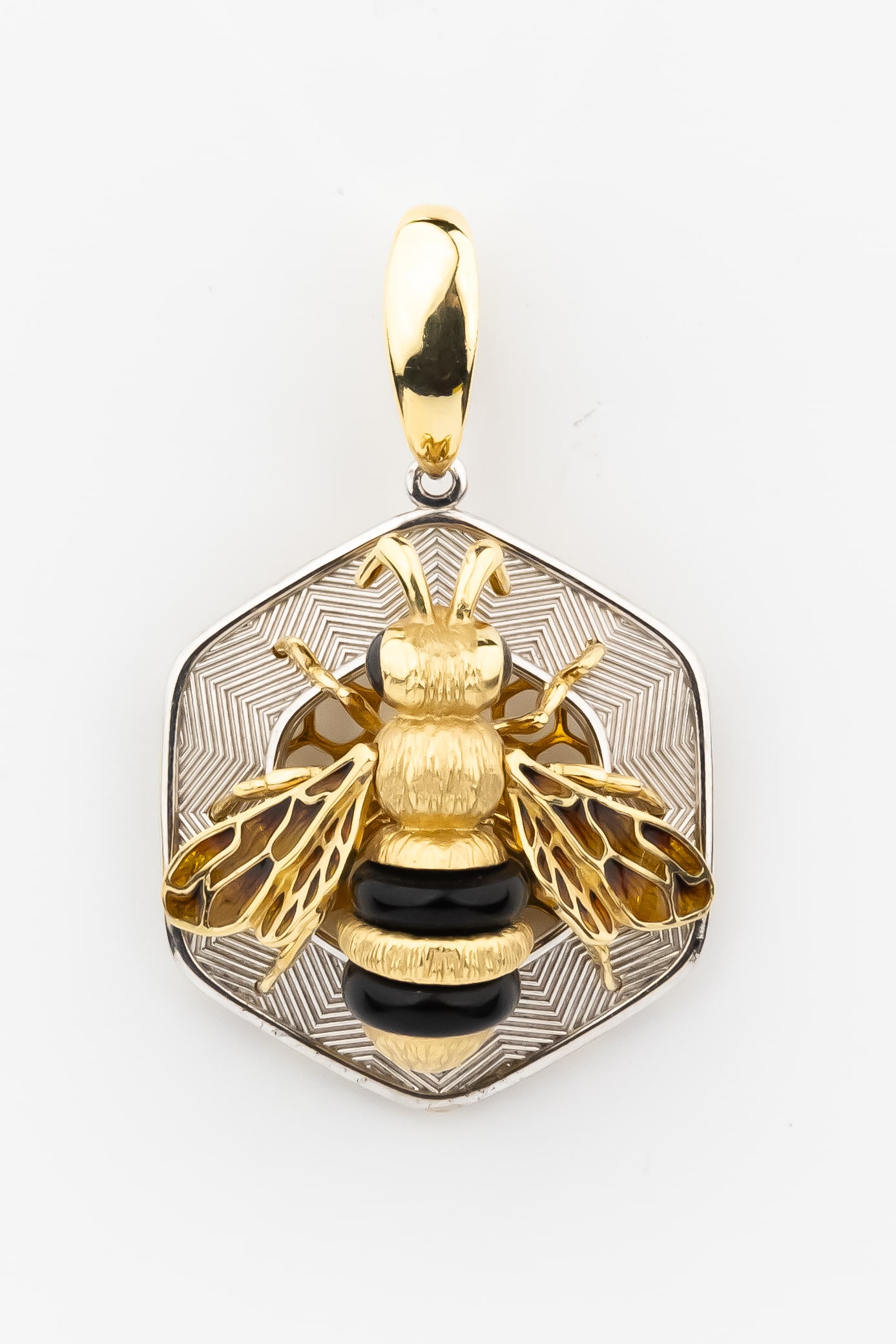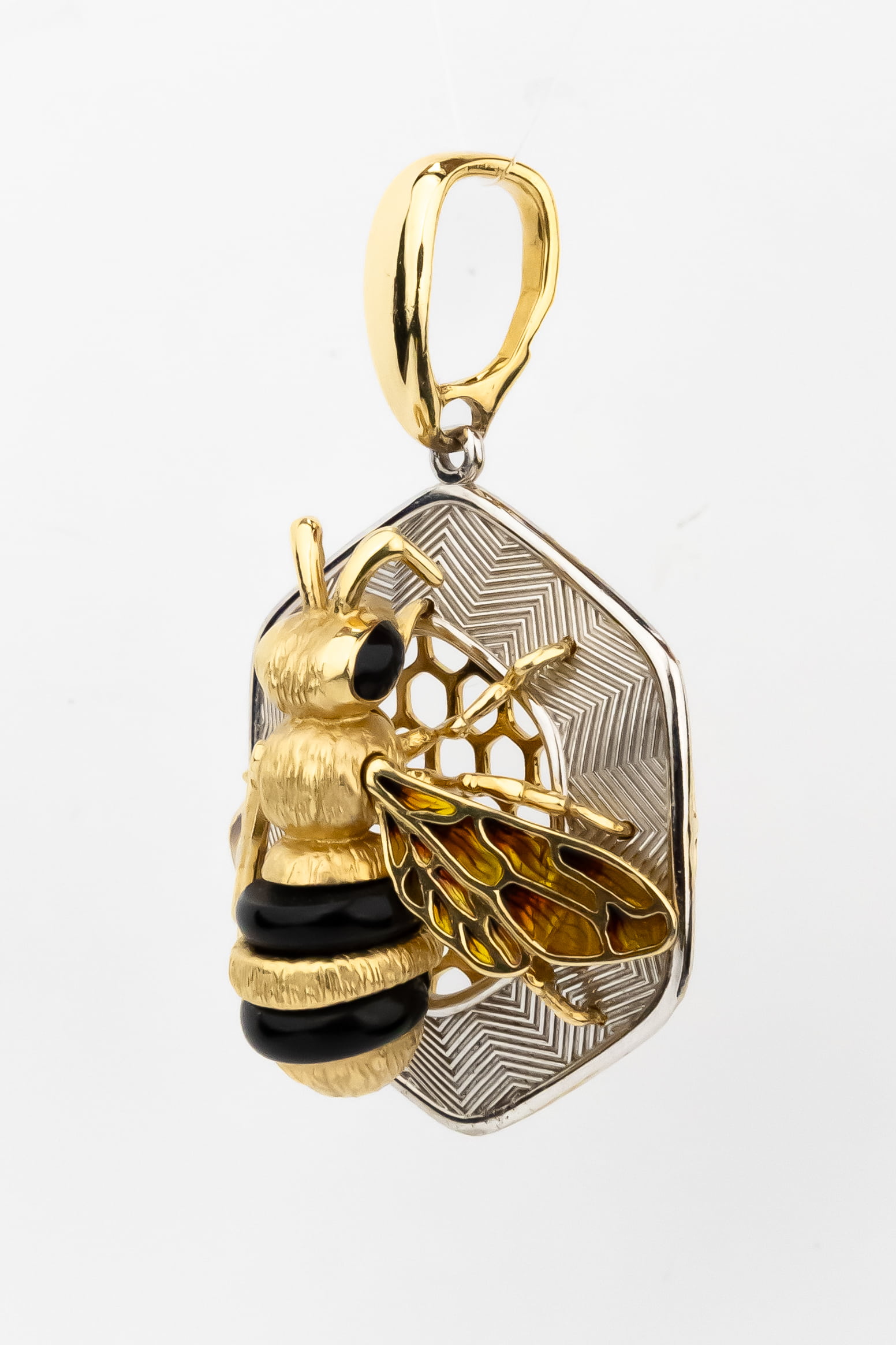Подвеска из лимонного золота c эмалью, ониксом и эмалью