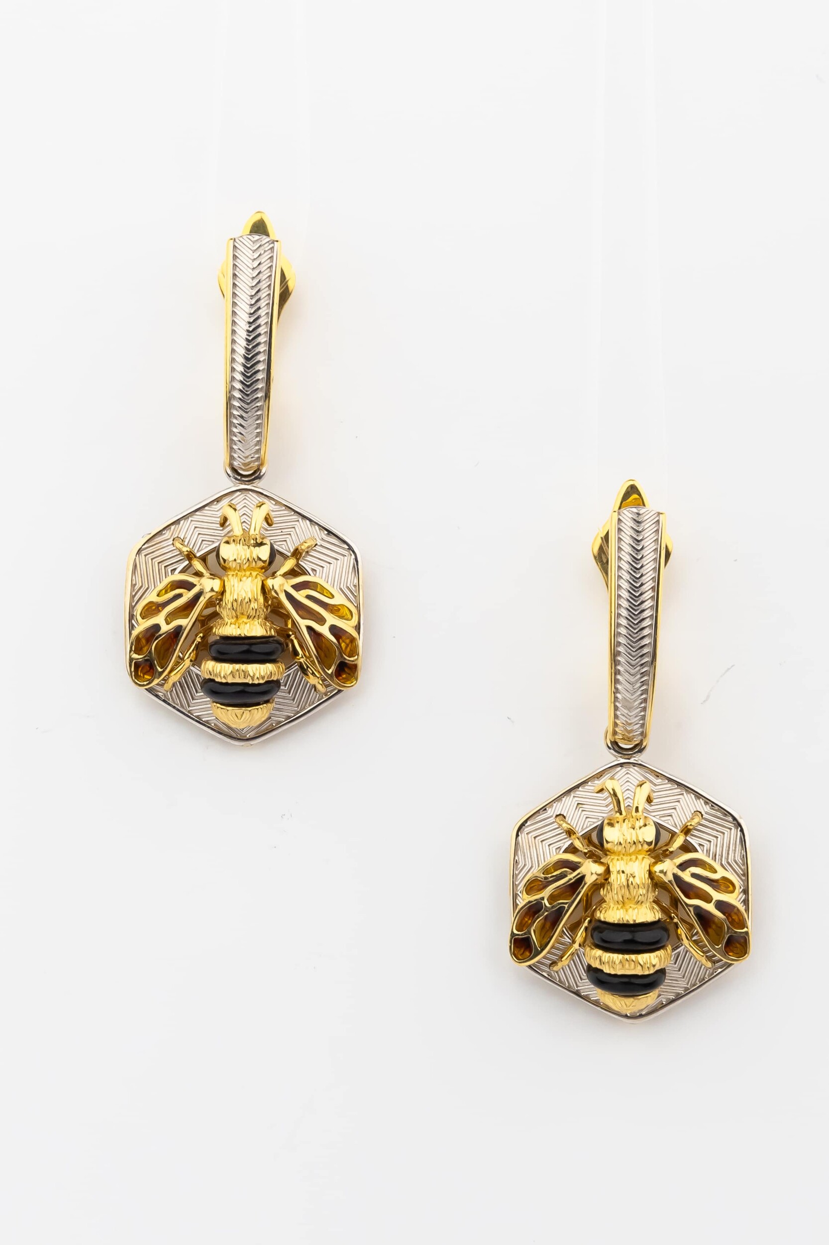 Серьги из лимонного золота c эмалью, ониксом и эмалью