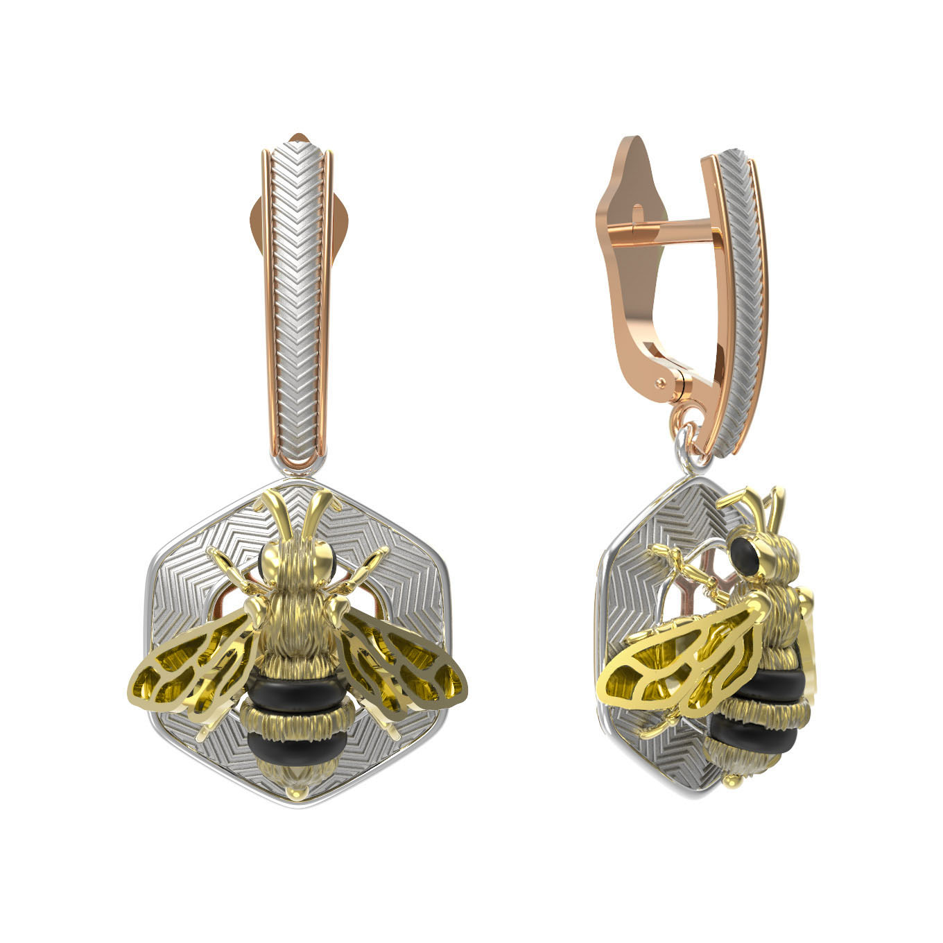 Серьги из золота c эмалью, ониксом и эмалью
