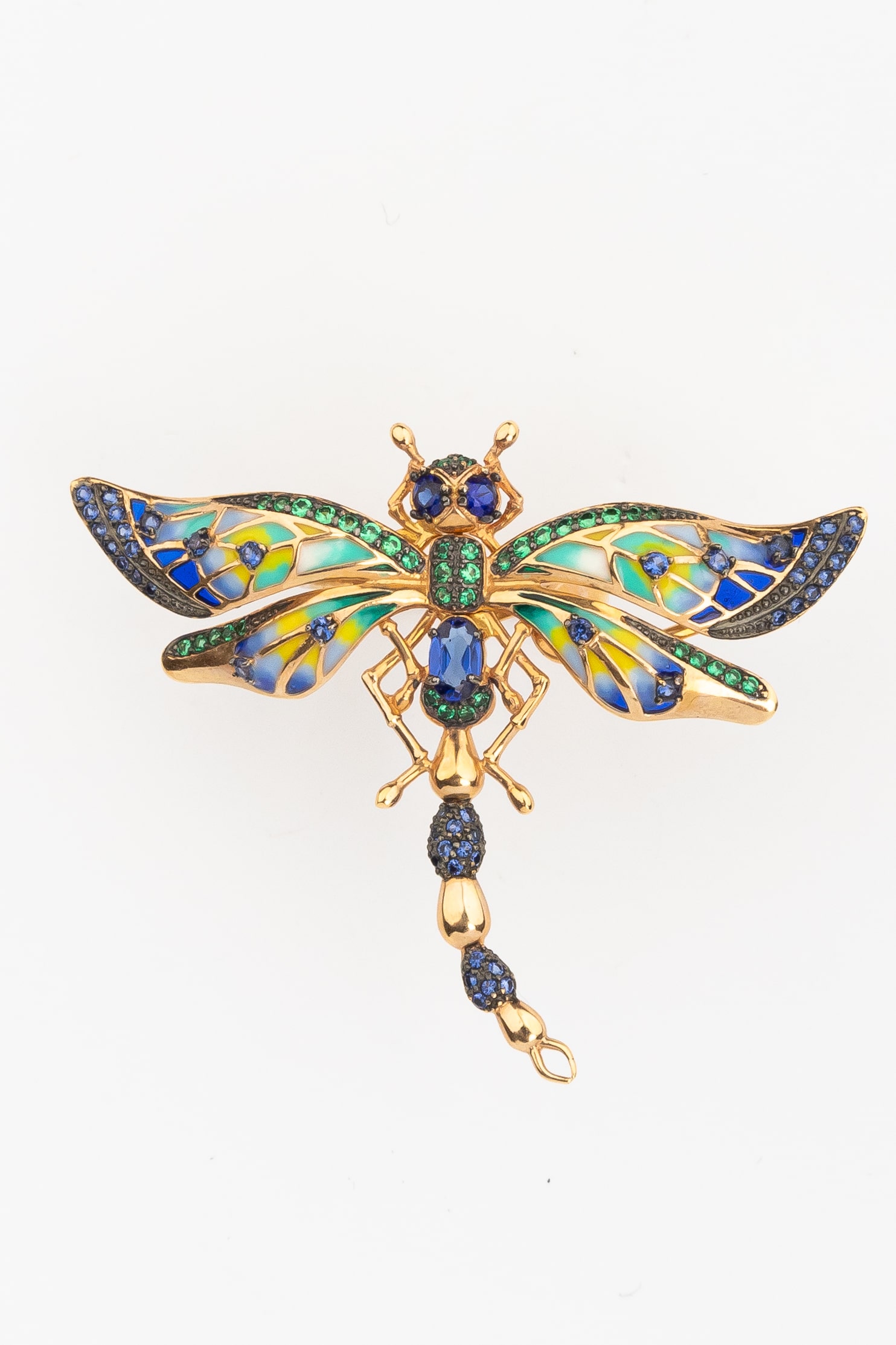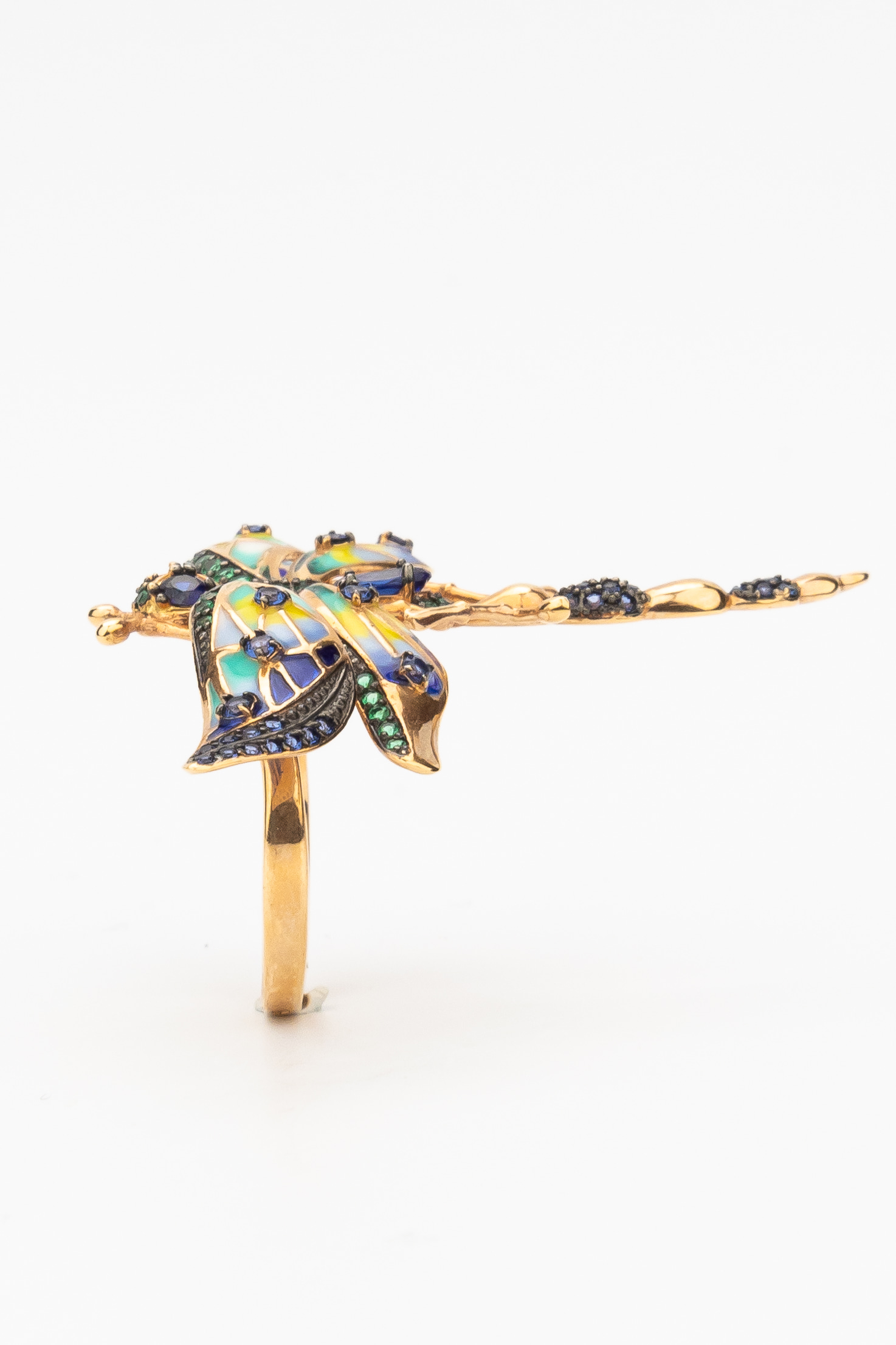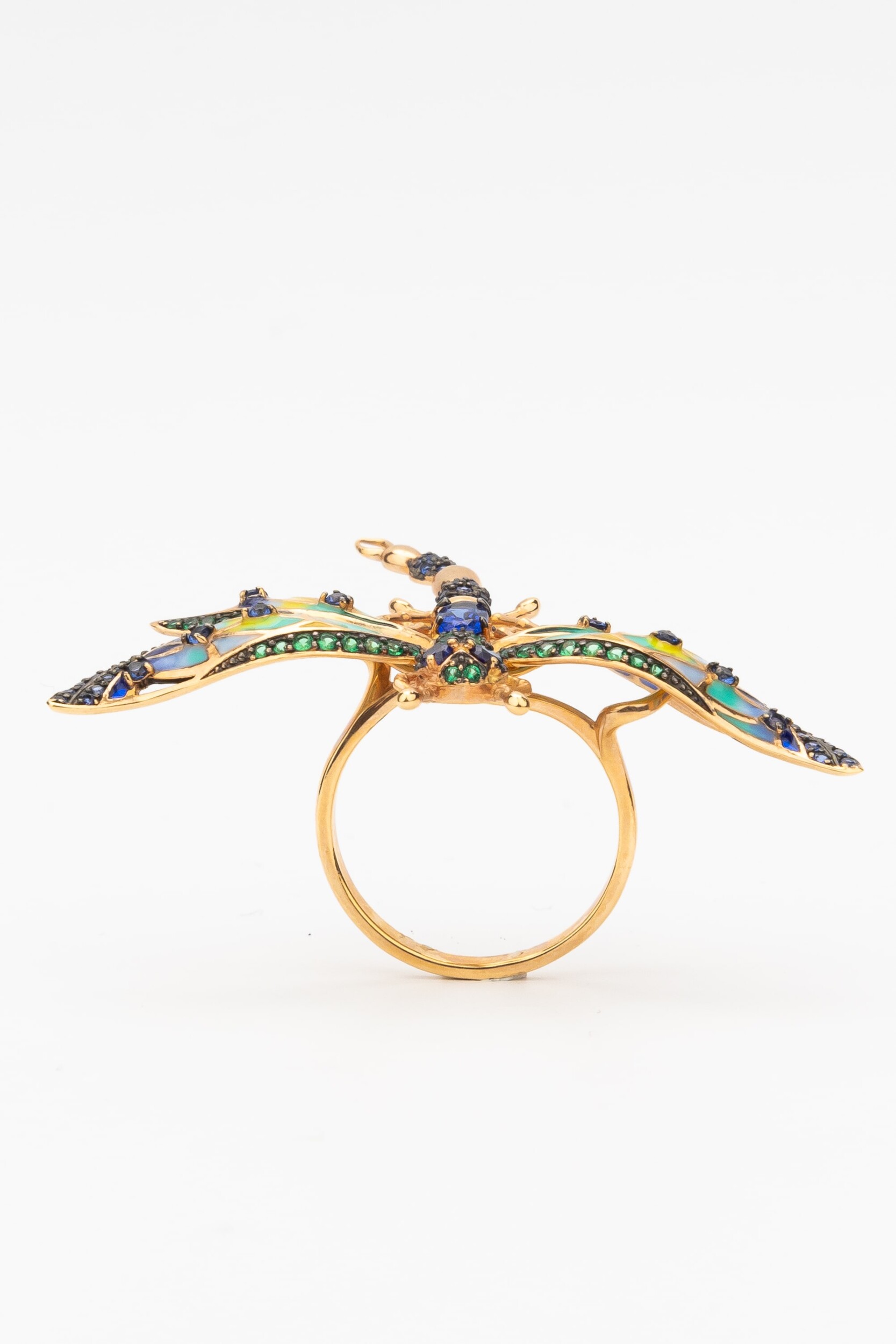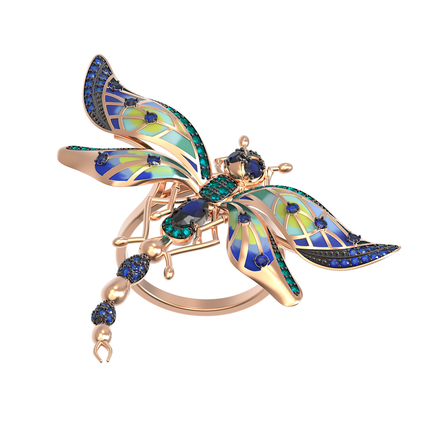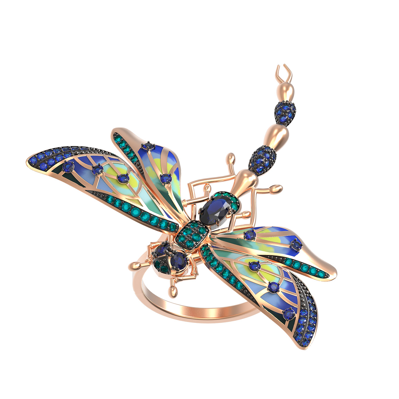 Кольцо из золота c фианитом, сапфиром и эмалью