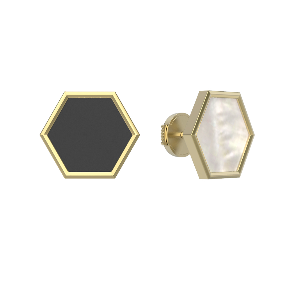 Серьги из лимонного золота c ониксом и перламутром