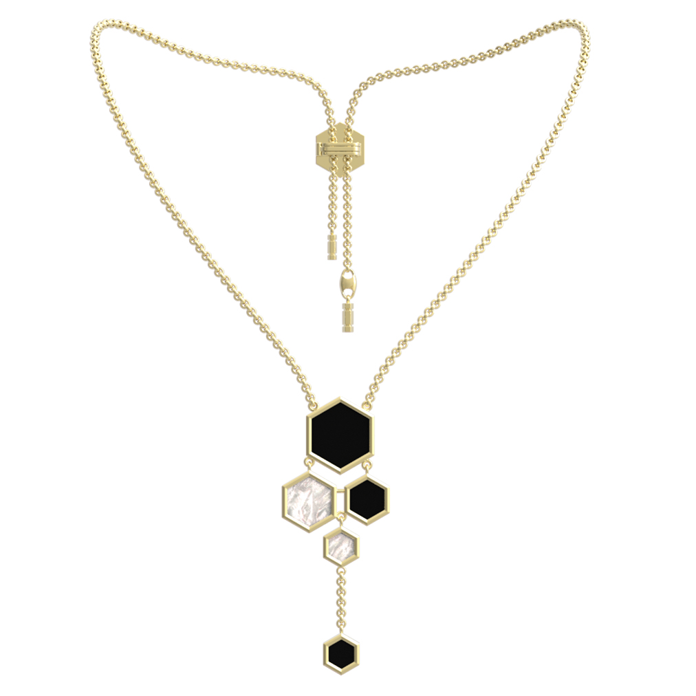 Колье из лимонного золота c ониксом и перламутром