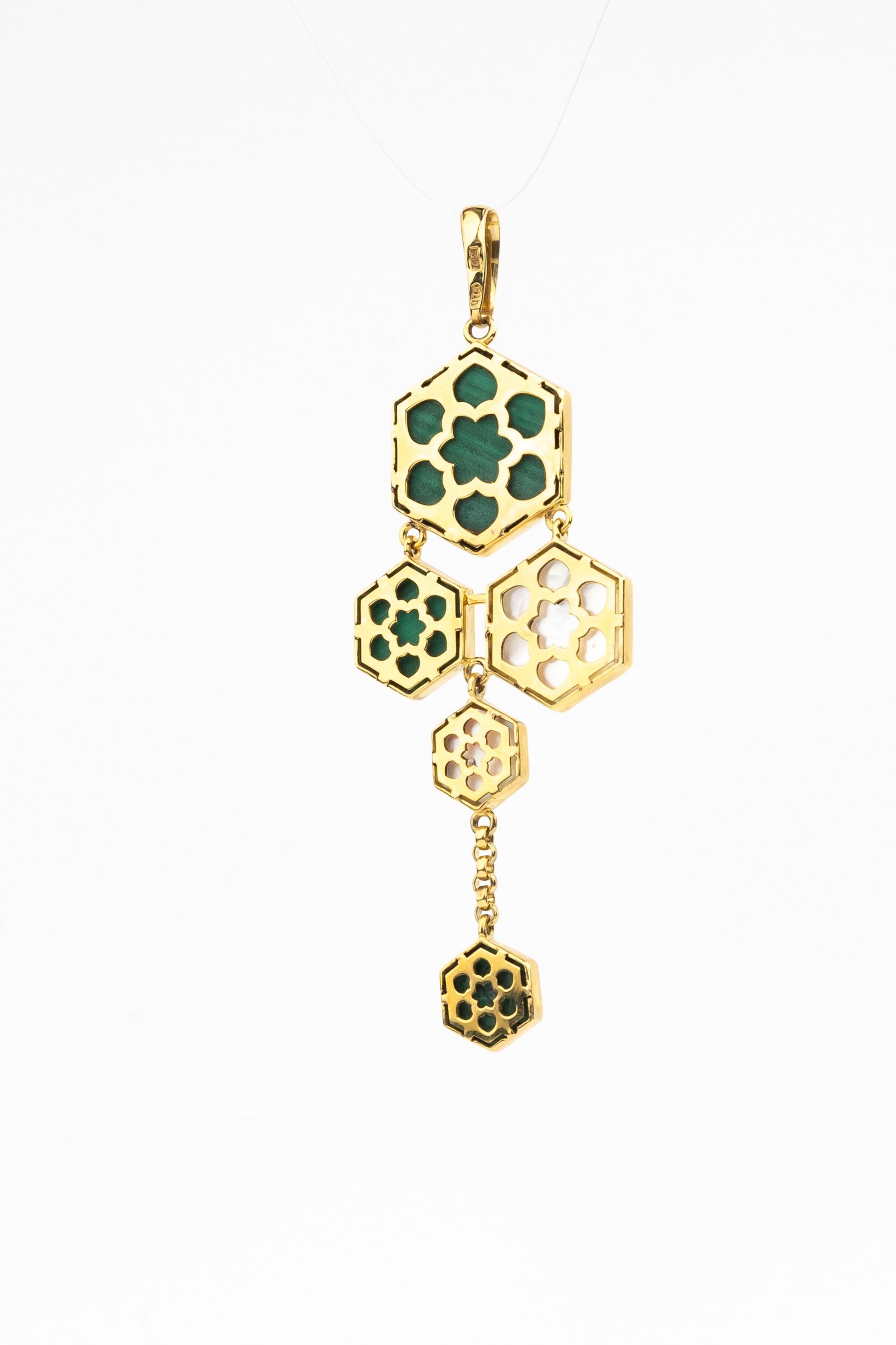 Подвеска из лимонного золота c малахитом и перламутром