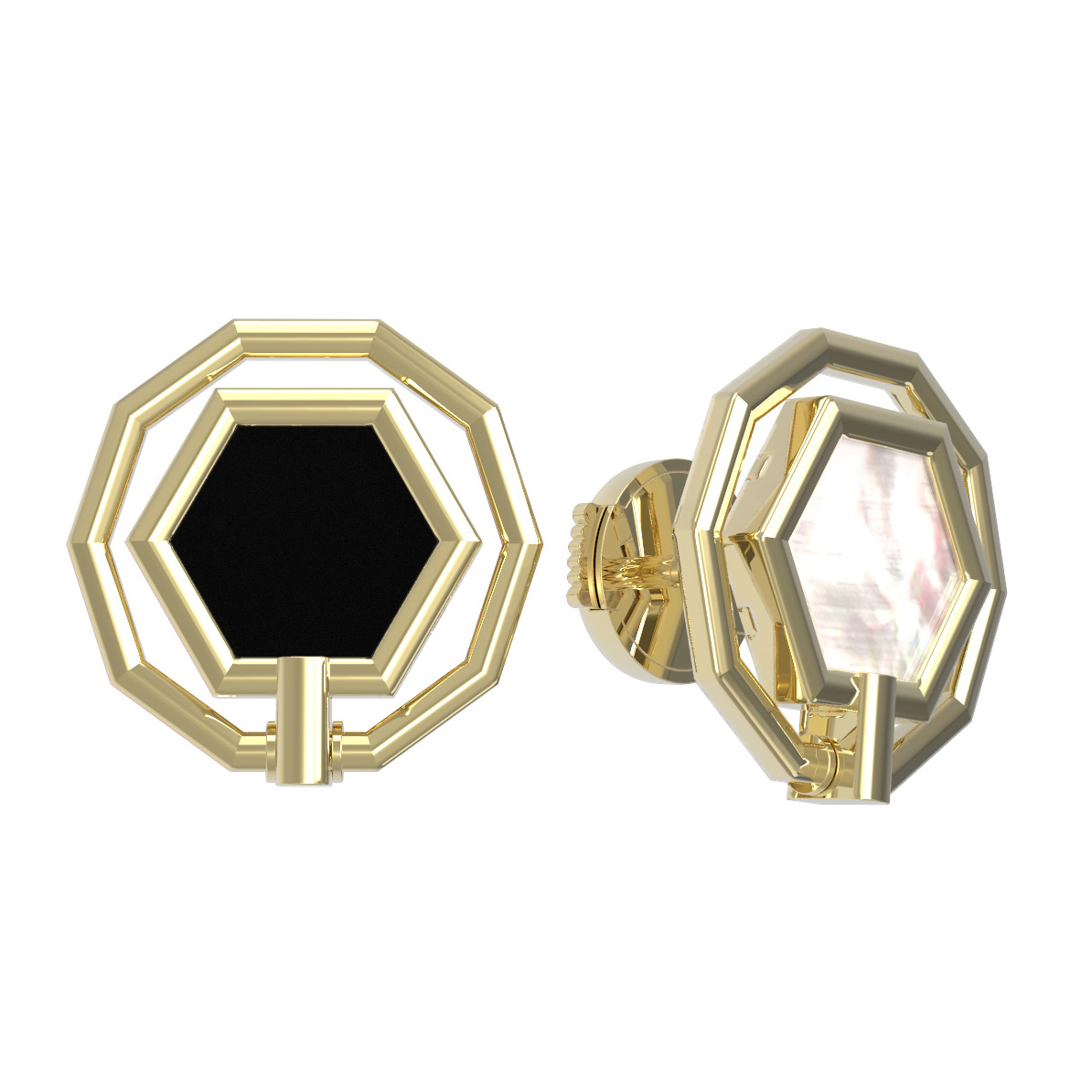 Серьги из лимонного золота c ониксом и перламутром