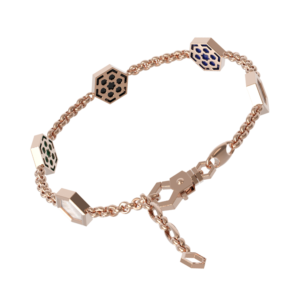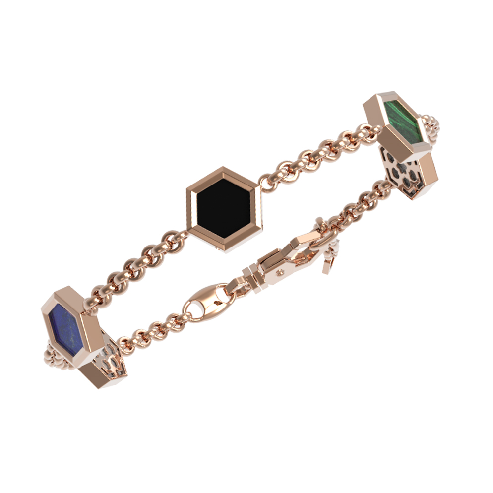 Браслет из золота c ониксом, лазуритом, малахитом и перламутром