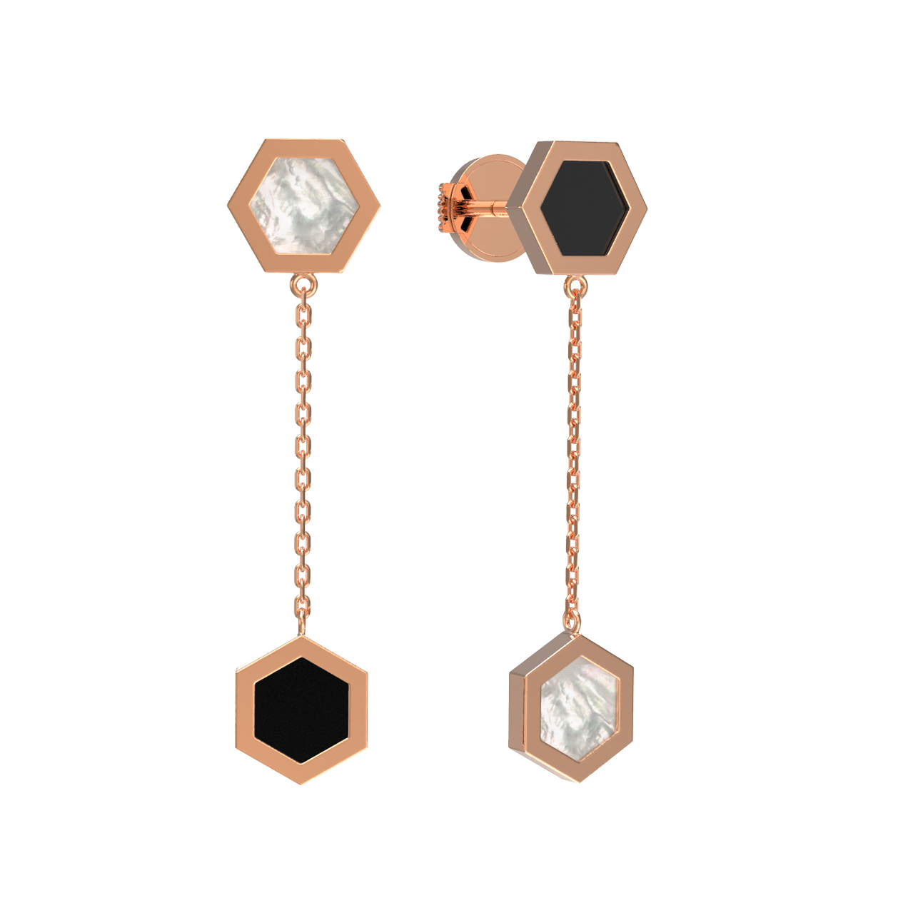 Серьги из золота c ониксом и перламутром