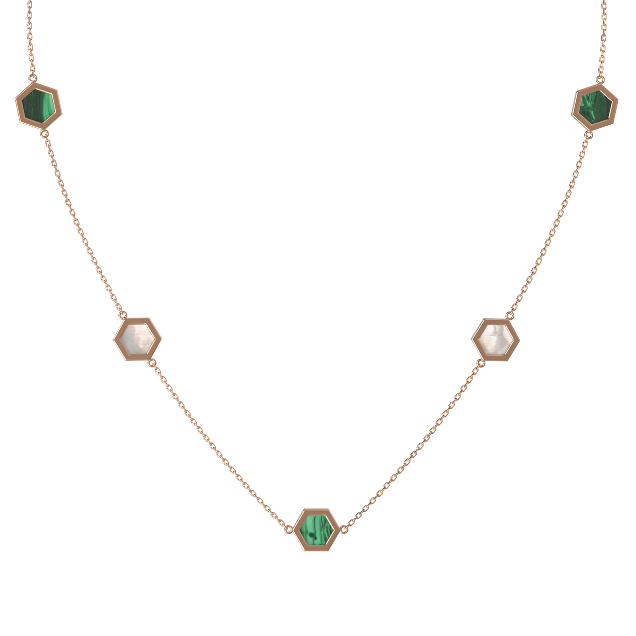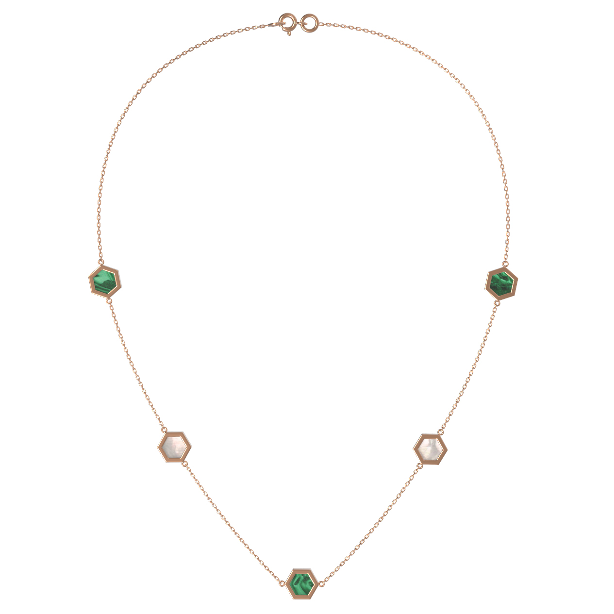 Колье из золота c малахитом и перламутром