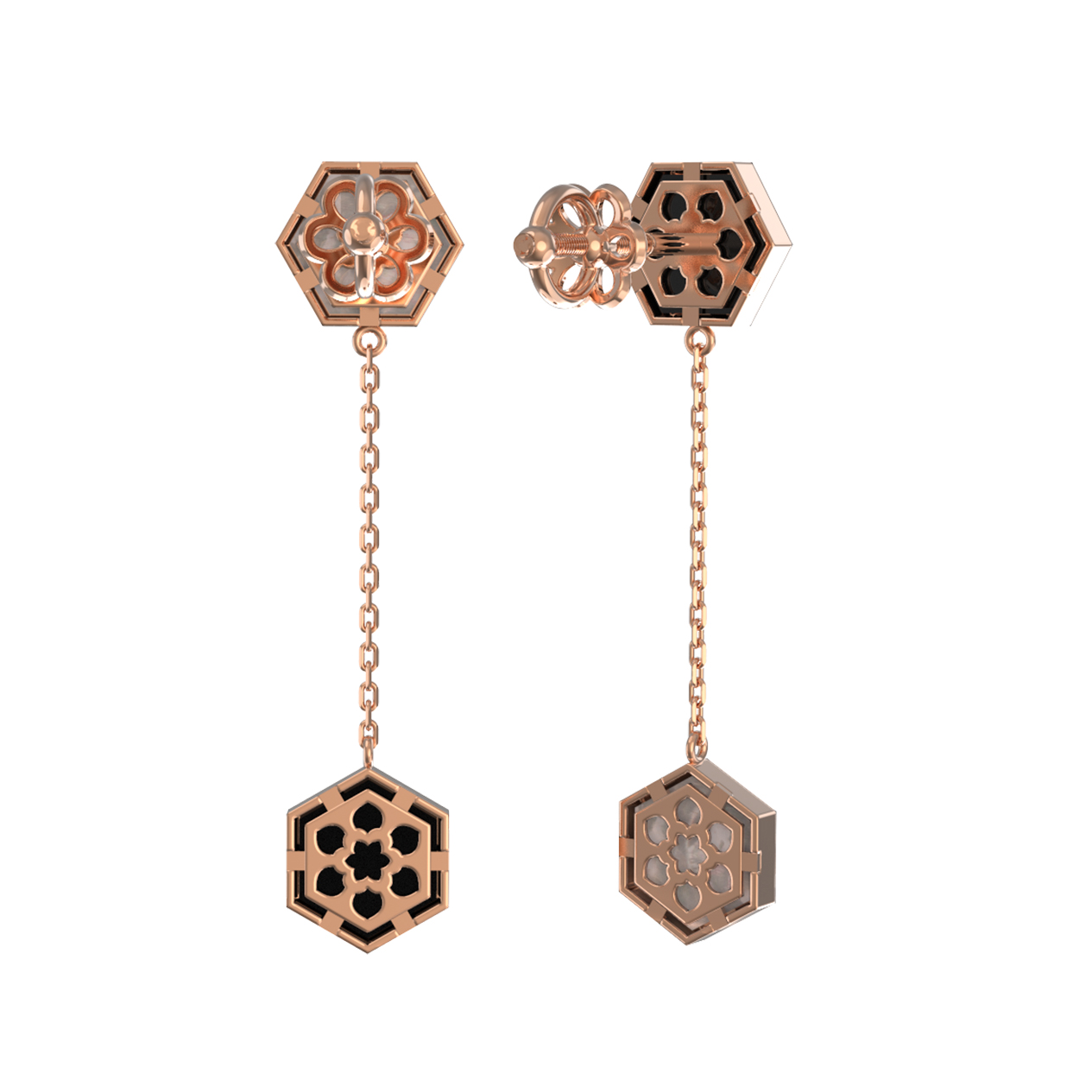 Серьги из золота c ониксом и перламутром