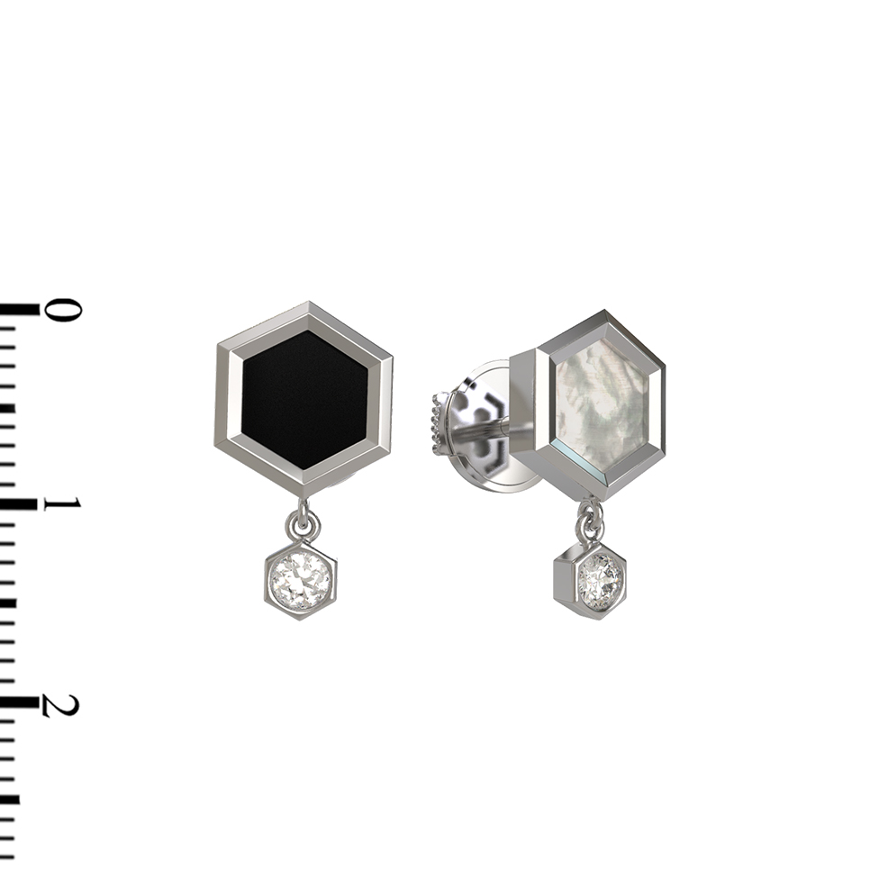 Серьги из белого золота c бриллиантами, ониксом и перламутром